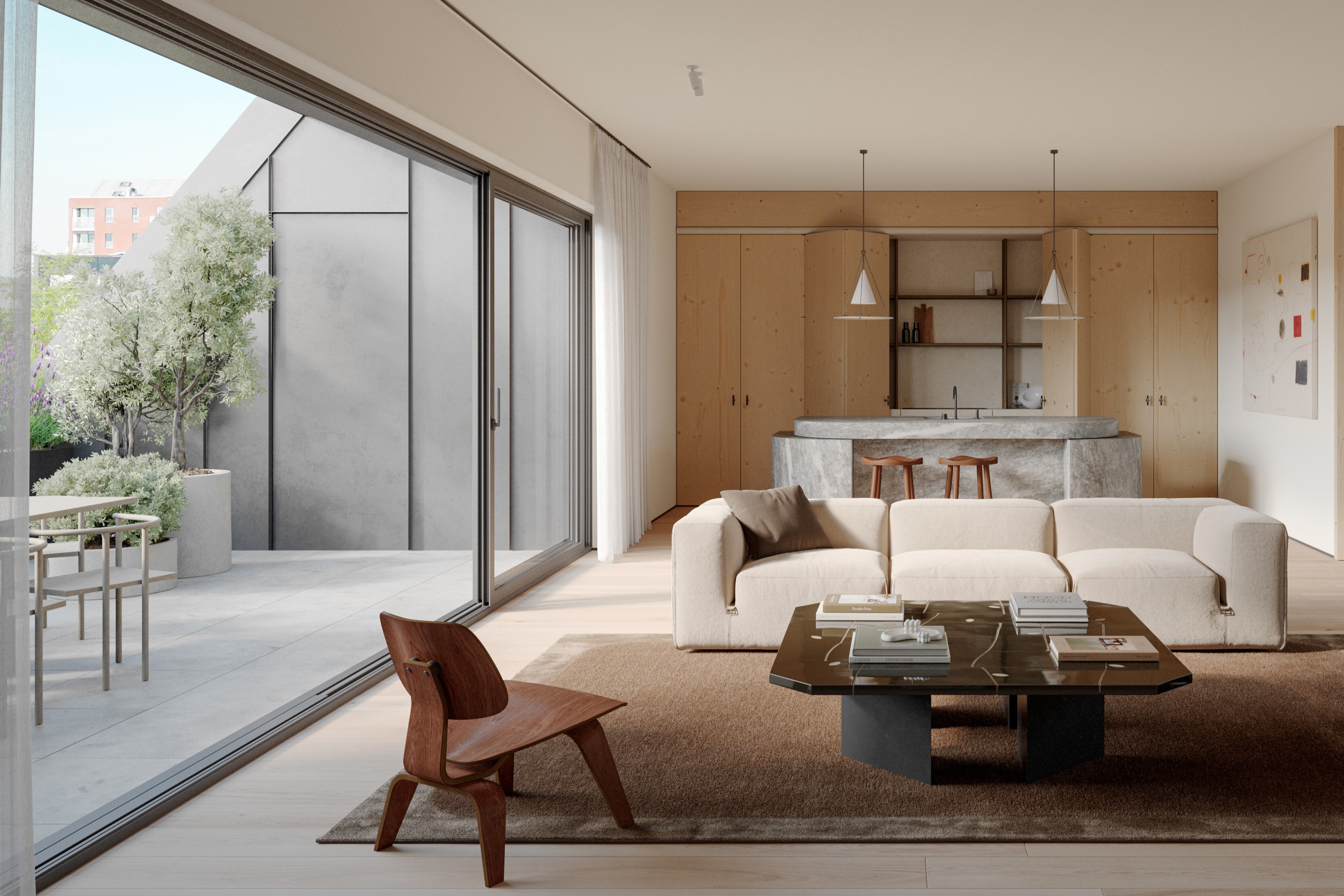Geniet van een wandeling in het openbare park, laat je kinderen er veilig spelen, kom tot rust in de gemeenschappelijke bewonerstuinen of kies voor totale privacy op je eigen ruime terras of op één van de mooie dakterrassen.