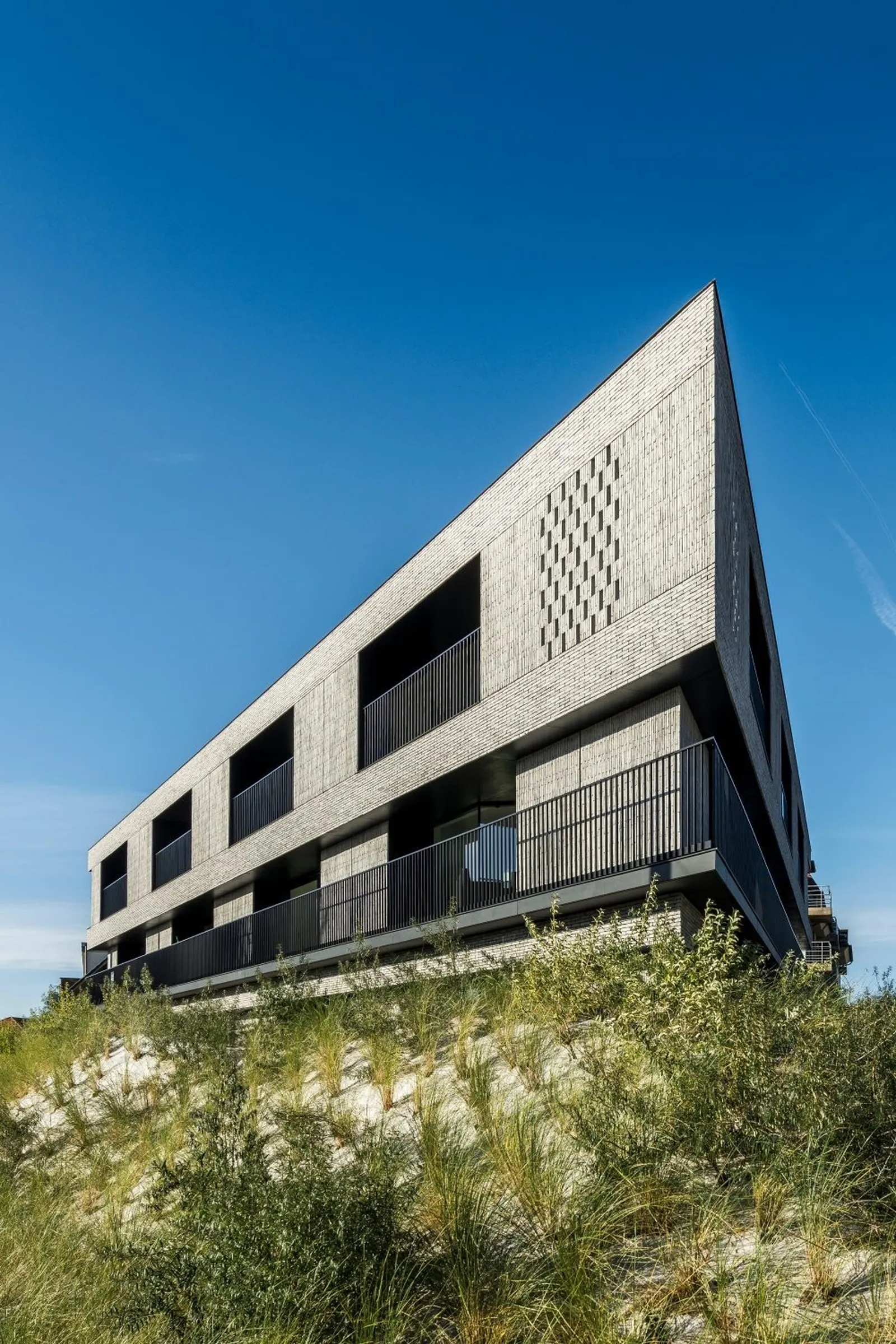 Het geheel is harmonieus ontworpen in een lichte, grijs genuanceerde paramentsteen van Wienerberger type Imperium Flavius.