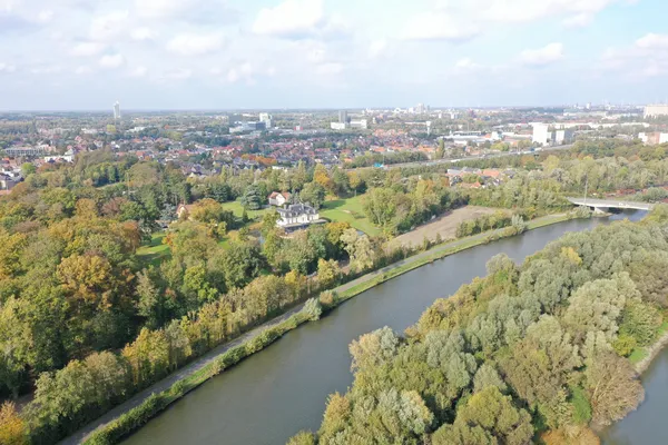 Zwijnaarde is een deelgemeente van Gent in de provincie Oost-Vlaanderen, op 6,5 km van Gent-Centrum. Ze dankt haar naam niet aan de zwijntjes, maar aan de Schelde die door de gemeente vloeit. De middeleeuwse naam ‘Suinarda’ zou afkomstig zijn van zwin, wat ‘kreek’ betekent. Zwijnaarde was aanvankelijk erg landelijk. Iconische kastelen verscholen in idyllische natuur omzoomden het centrum tot het midden van de 20ste eeuw. Ook vandaag zijn die kastelen nog beeldbepalend voor het Zwijnaardse landschap.
