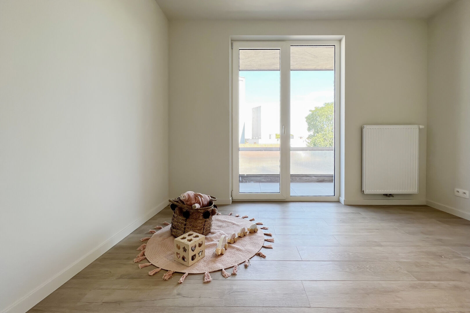 Het appartement biedt een bewoonbare oppervlakte van ca. 104,50 m² en is ingedeeld als volgt: via de inkomhal met ruime berging, heeft men toegang tot de lichtrijke leefruimte met zit- en eetgedeelte en de geïnstalleerde, open keuken. Via de leefruimte heeft men eveneens toegang tot de badkamer, voorzien van een inloopdouche en dubbele lavabo, een apart toilet en twee ruime slaapkamers. Tot slot zijn er nog 2 terrassen, één vooraan met zicht op de tolpoortstraat en één achteraan met zicht op de site van Liv De Molens, met zijn hoogstaande architectuur en ruime aanbod aan binnentuinen en waterpartijen.