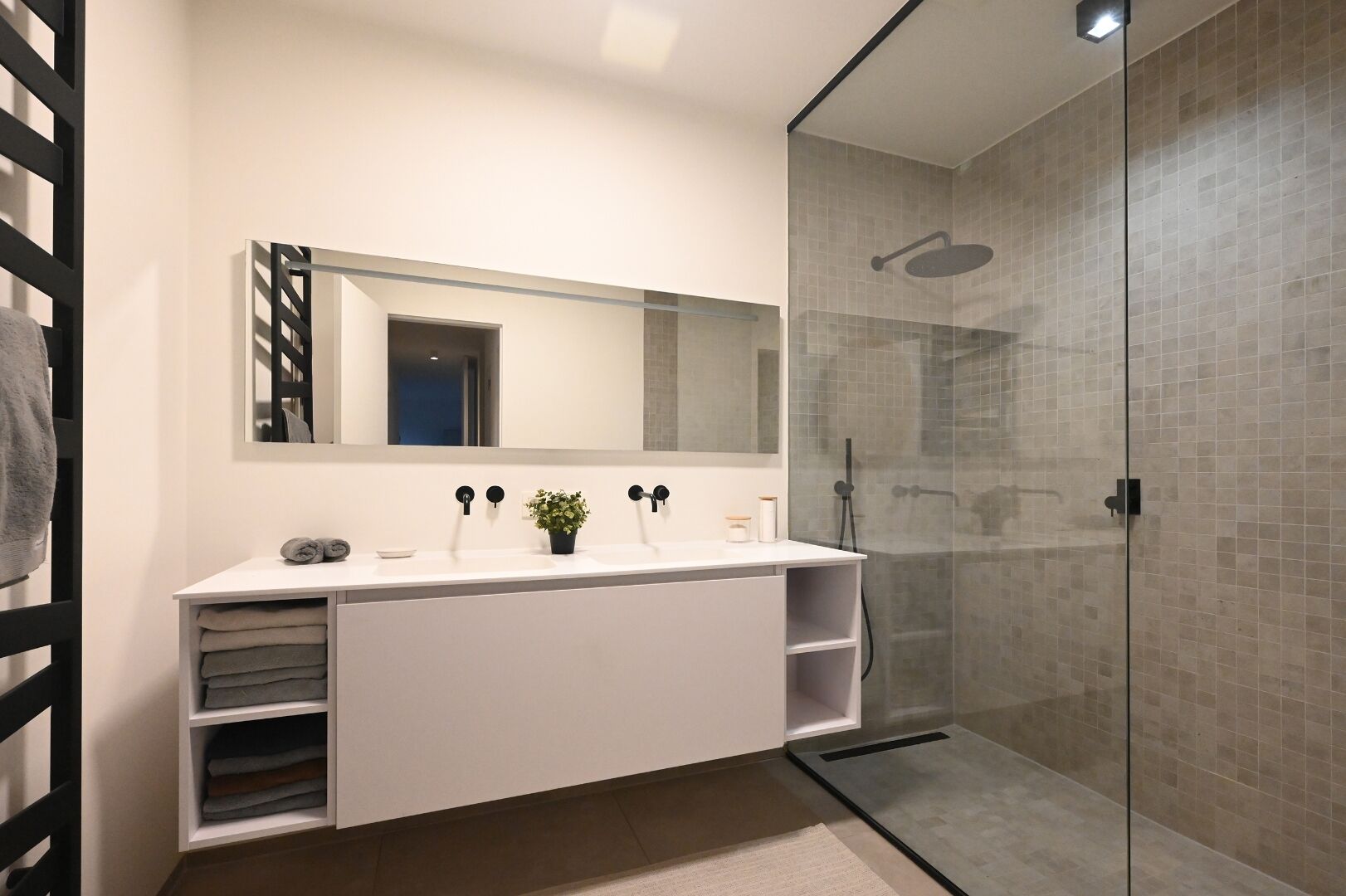 Dit bijna-energieneutraal nieuwbouwappartement is voorzien van een individuele warmtepomp, vloerverwarming, fotovoltaïsche panelen en een ventilatiesysteem type D met warmterecuperatie. Het E-peil werd hierdoor teruggebracht naar slechts E15. Naast de bijzondere aandacht voor thermische isolatie, werd ook het akoestische comfort geoptimaliseerd. Villa Neerleie vormt tevens de kop van de Markt waar een veelzijdig aanbod van diensten, zorg, shopping, cultuur en gastronomie samenkomt.