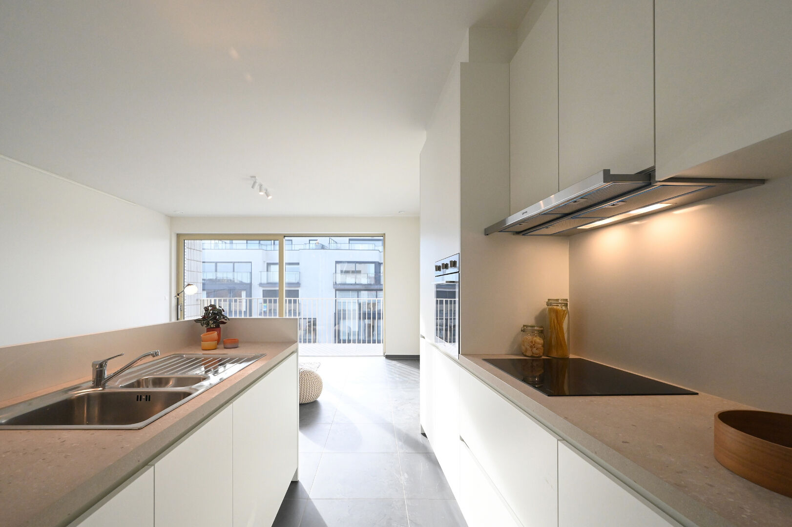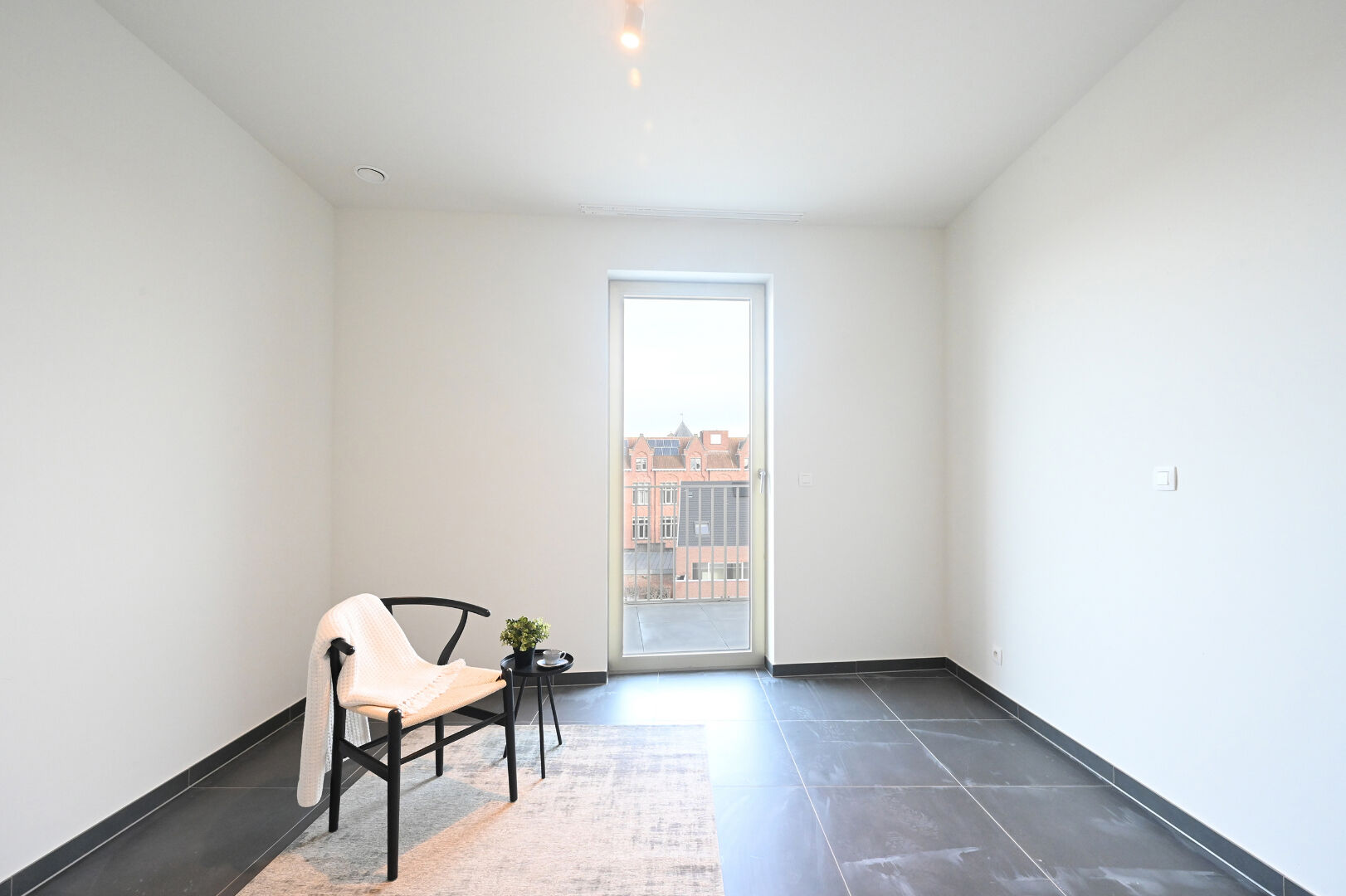 Het appartement beschikt over een lichtrijke leefruimte met open keuken en toegang tot een zuidgericht terras met zicht op de Markt. Verder zijn er twee slaapkamers, beide toegang tot een terras. De badkamer heeft een inloopdouche en dubbele wastafel. Daarnaast zijn er een apart toilet en een praktische berging. Beide terrassen beschikken over extra bergruimte.