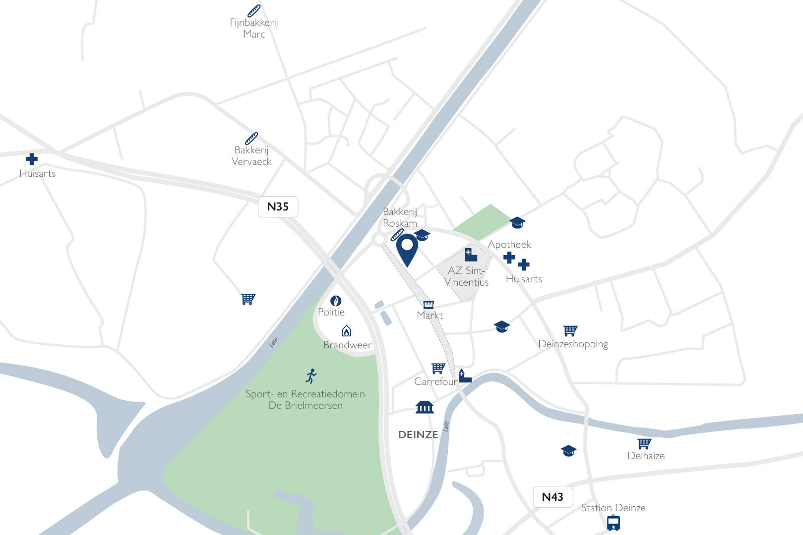 omringd door een divers aanbod van restaurants, café's, winkels, cultuur, zorg en de Brielmeersen met haar prachtig aanbod aan natuur, recreatie en sportfaciliteiten.