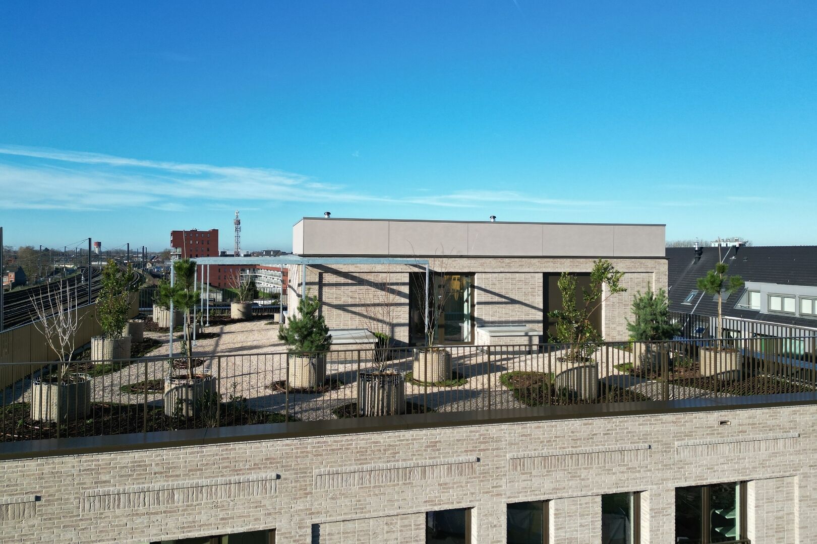 Daarnaast beschikt de residentie over een gemeenschappelijk daktuin waar bewoners in alle rust kunnen genieten van de buitenlucht en het uitzicht.