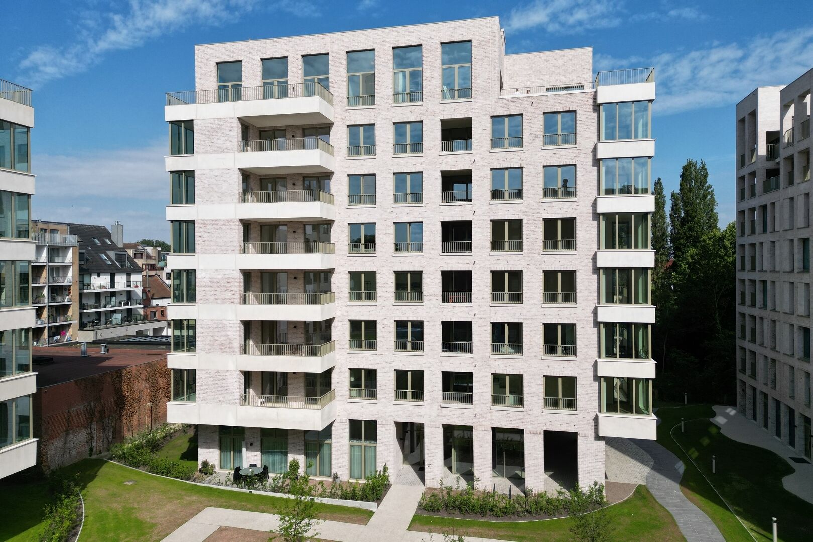 Dit modern appartement situeert zich in Liv de Molens, ook wel de 'vijf-minutenstad' genoemd omdat alles wat u dagdagelijks nodig heeft, op slechts vijf minuutjes wandelen kan terugvinden. Daarnaast is er een vlotte bereikbaarheid met zowel de wagen als het openbaar vervoer. Het treinstation van Deinze ligt op 10 minuten wandelen. De door groen omgeven site langs de Leie biedt daarnaast een mix van sport, recreatie, horeca en andere diverse diensten.