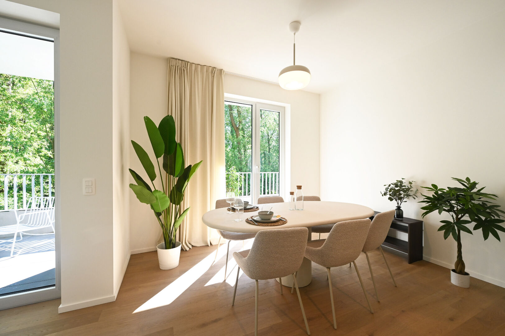 Voor de publicatie worden foto’s van het modelappartement gebruikt aangezien de werken in dit appartement nog niet volledig zijn afgerond.