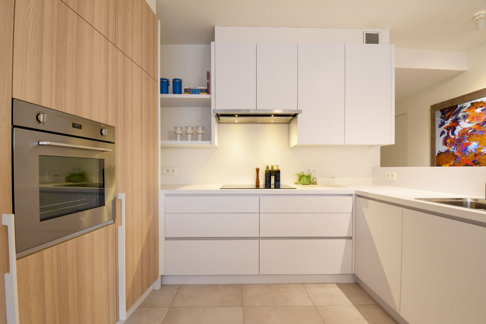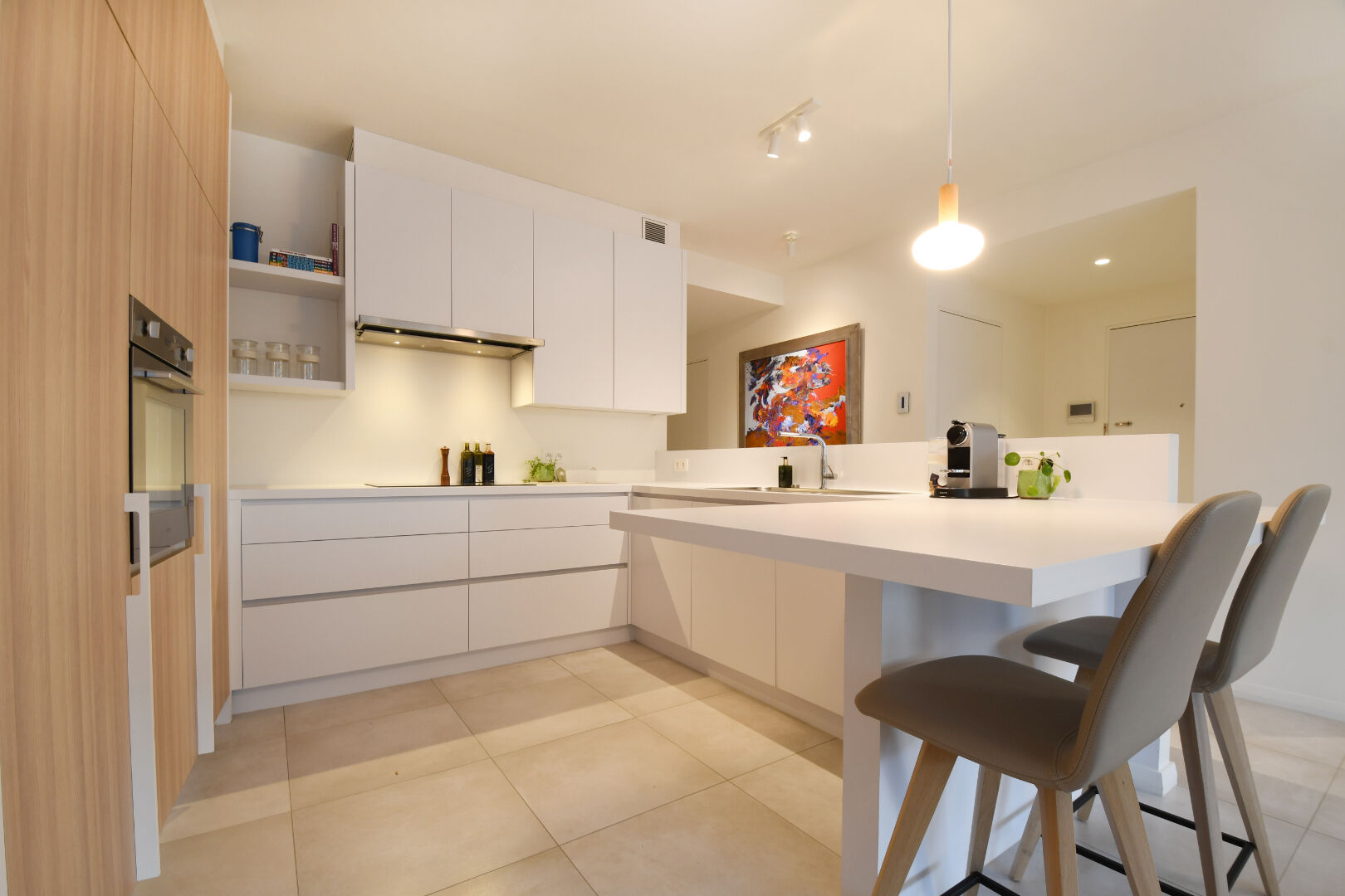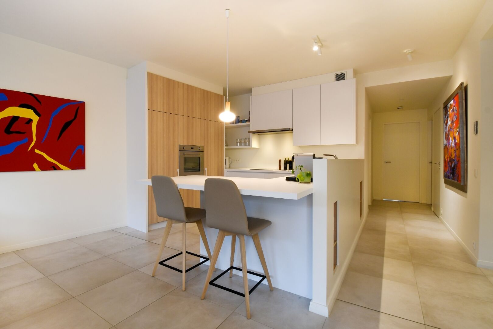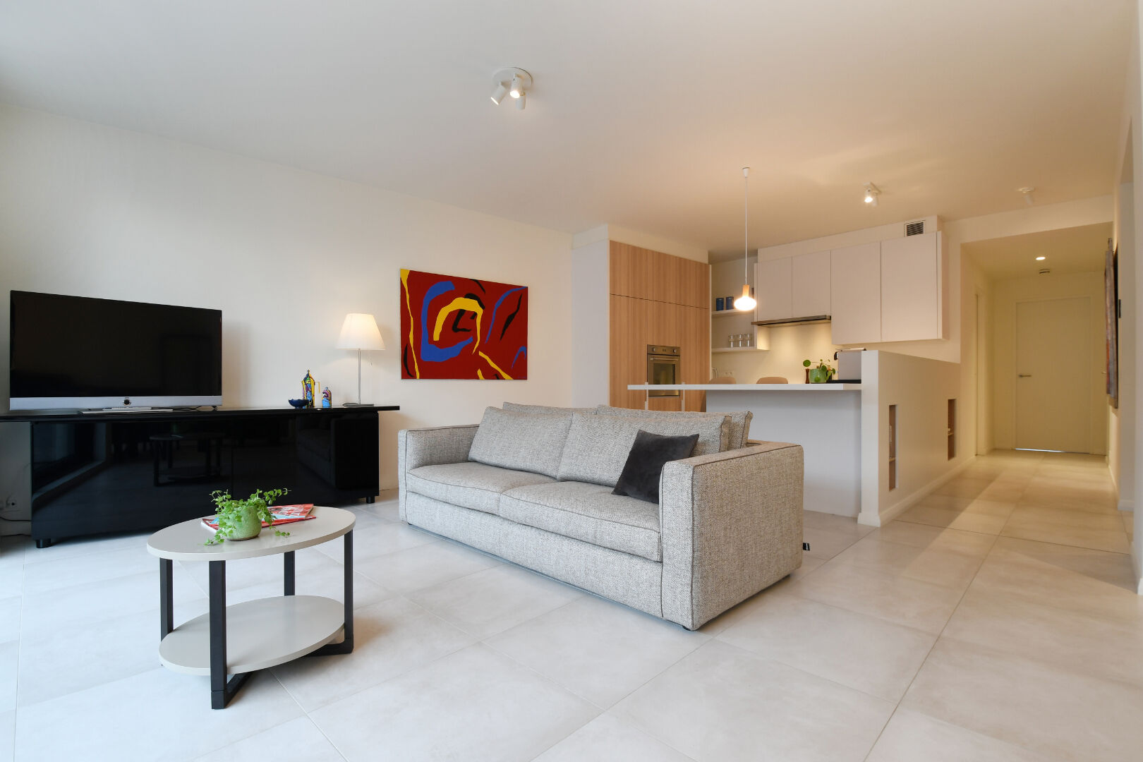 Het appartement heeft een bewoonbare oppervlakte van 109 m² en bestaat uit een inkomhal afgewerkt met een praktische inbouwkast, een lichtrijke leefruimte met een volledig geïnstalleerde open keuken en directe toegang tot het terras, een praktische berging, een badkamer met inloopdouche en dubbele lavabo, een afzonderlijk toilet en twee ruime slaapkamers waarvan één grenzend aan het terras. Het appartement wordt verwarmd dmv centrale verwarming met een individuele hoogrendementsketel op aardgas. Voor de ventilatie werd gekozen voor een individueel systeem met warmterecuperatie (D). Ook voor het schrijnwerk werd geopteerd voor de hoogste kwaliteit met hoogwaardig aluminium (Schüco) en super isolerende beglazing.