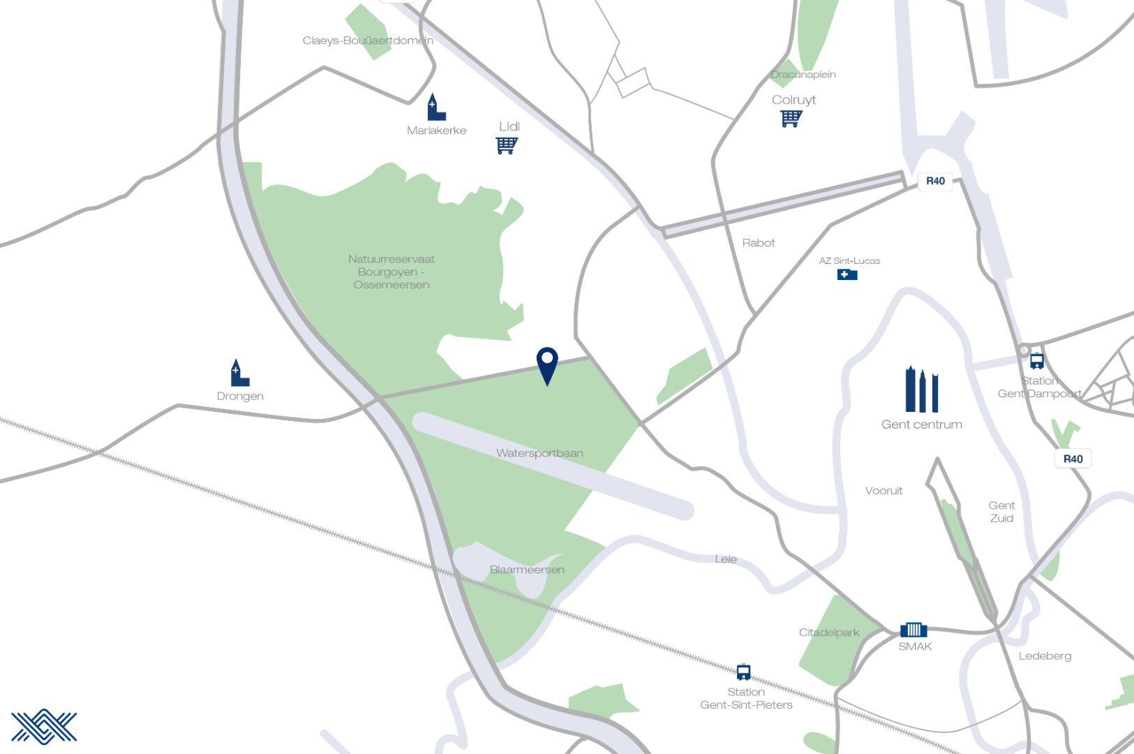 Het appartement is vlot bereikbaar dankzij de nabijheid van belangrijke invalswegen en het openbaar vervoer. Door de ligging aan de Watersportbaan en vlak bij het recreatiedomein de Blaarmeersen is er een ruim aanbod aan wandel- en sportmogelijkheden in een groene omgeving. Bovendien bevinden zich supermarkten, winkels en andere voorzieningen in de nabije omgeving, wat deze locatie bijzonder aangenaam maakt om te wonen.