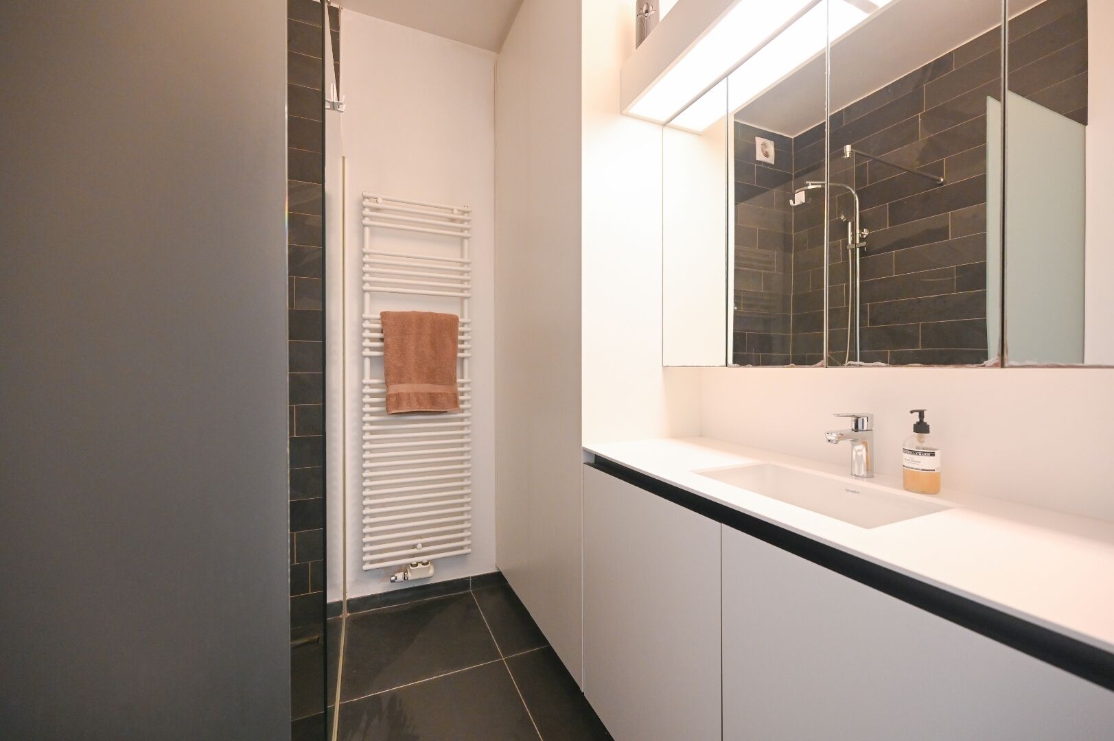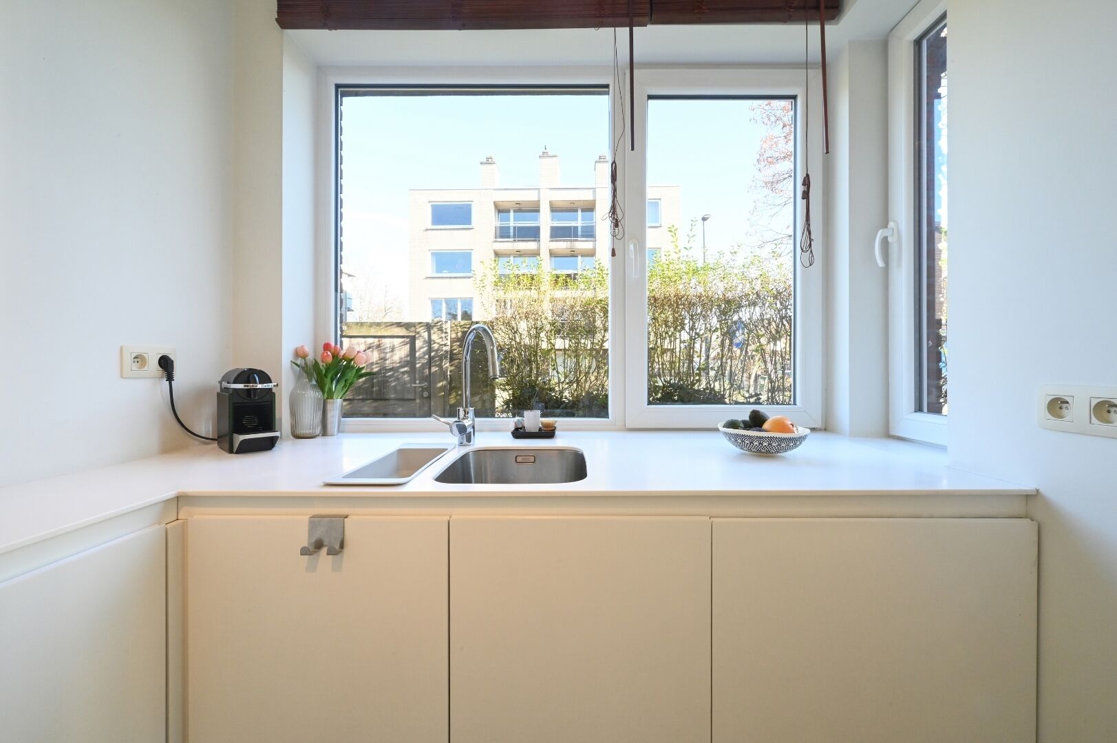 Een ruime garagebox, bereikbaar via het appartement, is inbegrepen in de huurprijs. De maandelijkse provisie voor het onderhoud van de tuin bedraagt €36.