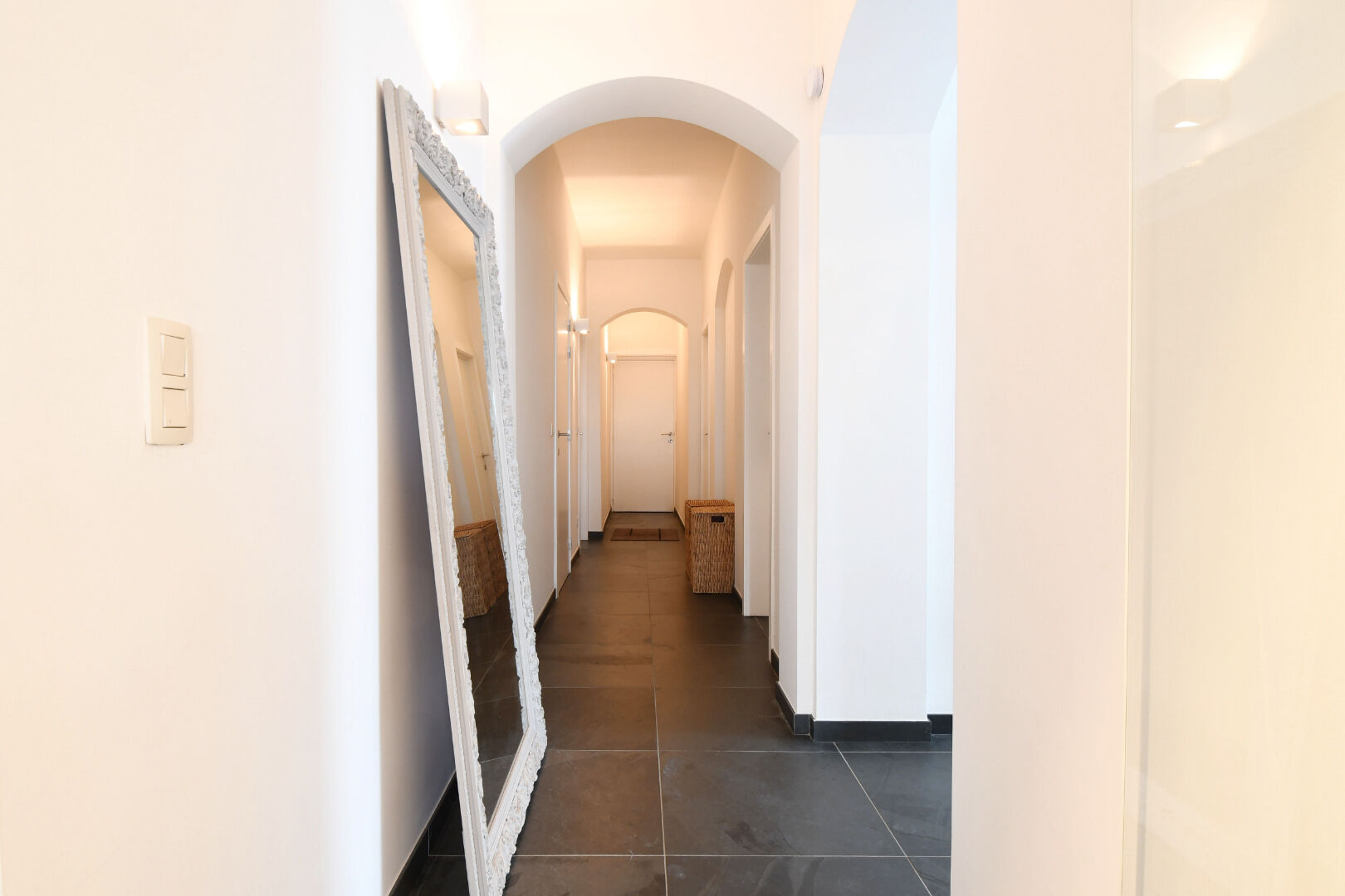 Het appartement heeft een bewoonbare oppervlakte van 118 m² en bestaat uit een inkomhal, een lichtrijke leefruimte met open keuken, drie volwaardige slaapkamers en een badkamer met een inloopdouche, lavabo en toilet. Daarnaast beschikt het appartement over een kelder en een zuidgerichte tuin.