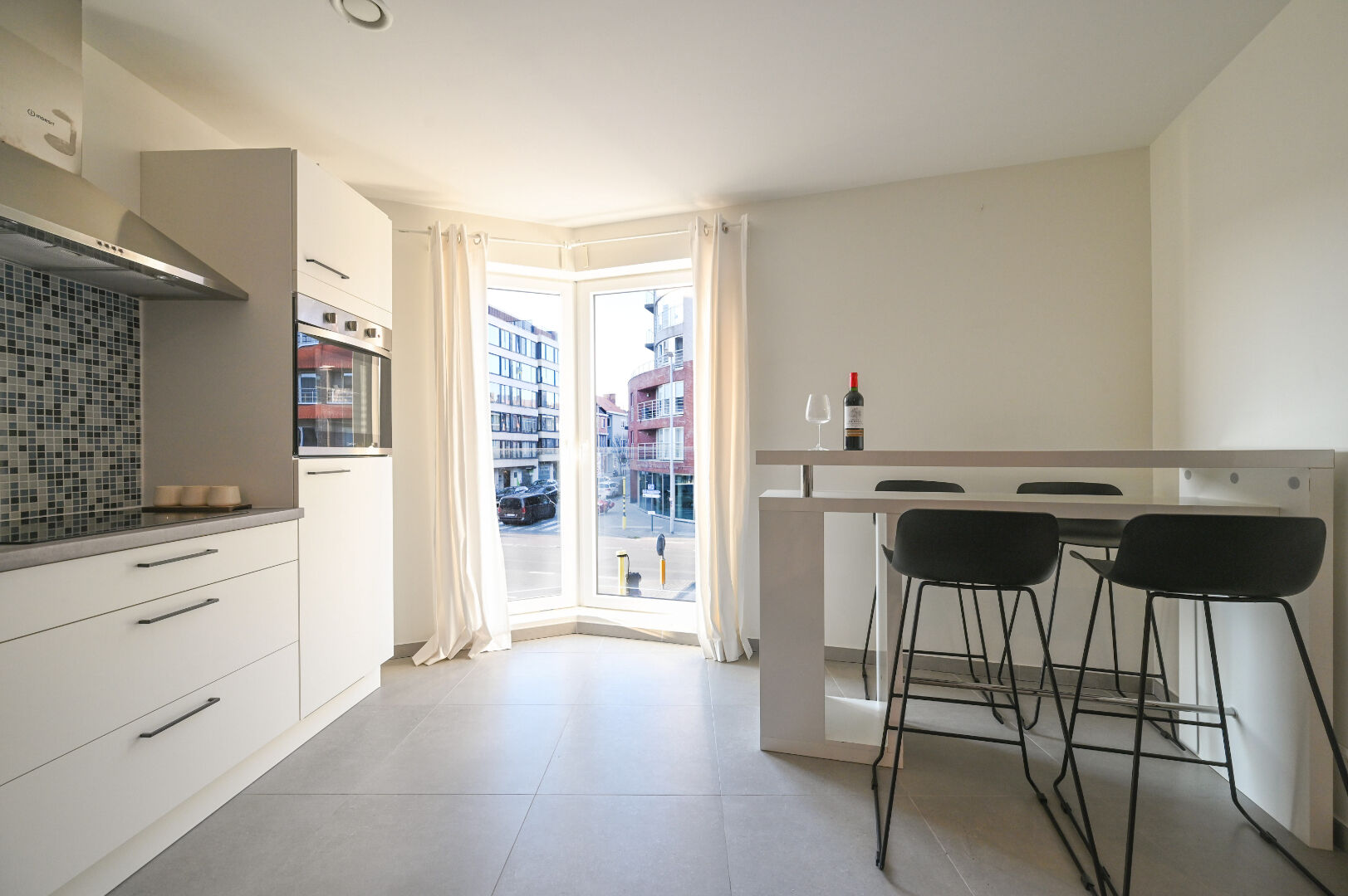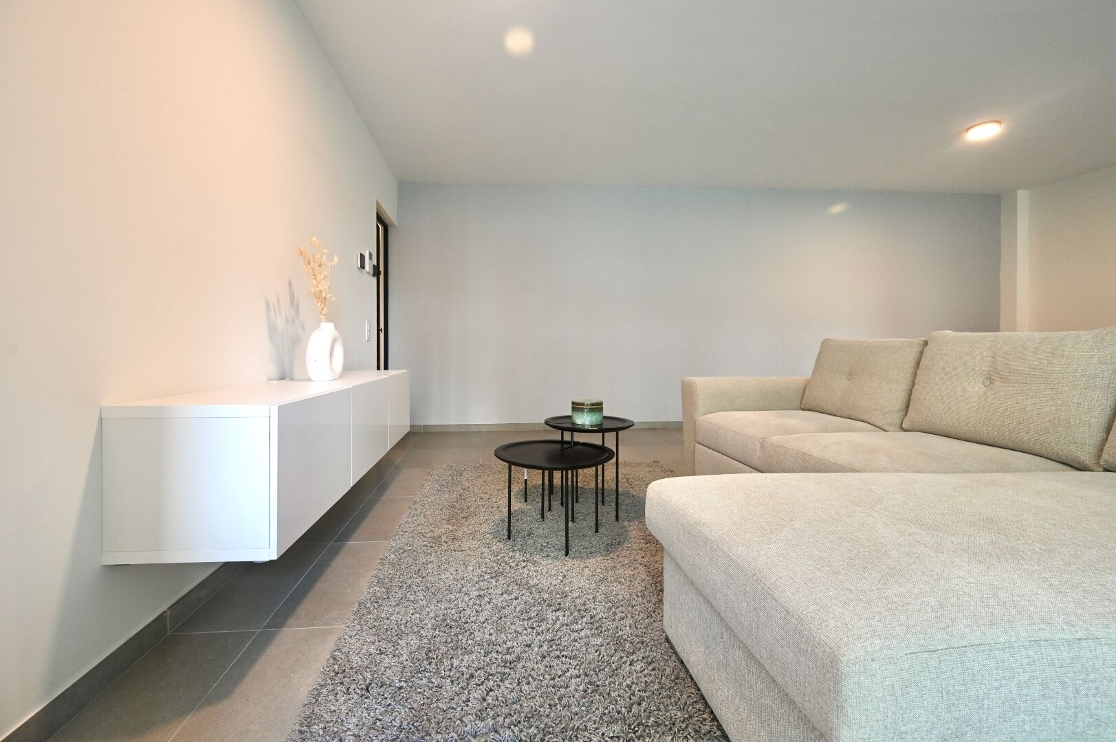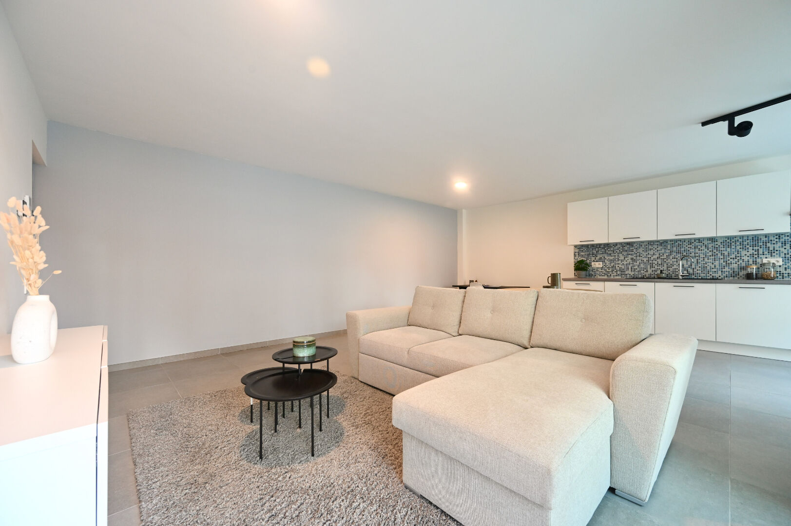 Bij het betreden van het appartement kom je in een inkomhal die toegang biedt tot alle andere vertrekken. De lichtrijke leefruimte vormt het hart van het appartement en sluit aan op een open keuken met eetplaats. Vanuit de leefruimte bereik je het terras dat voldoende ruimte biedt om een sfeervolle buitenhoek te creëren.