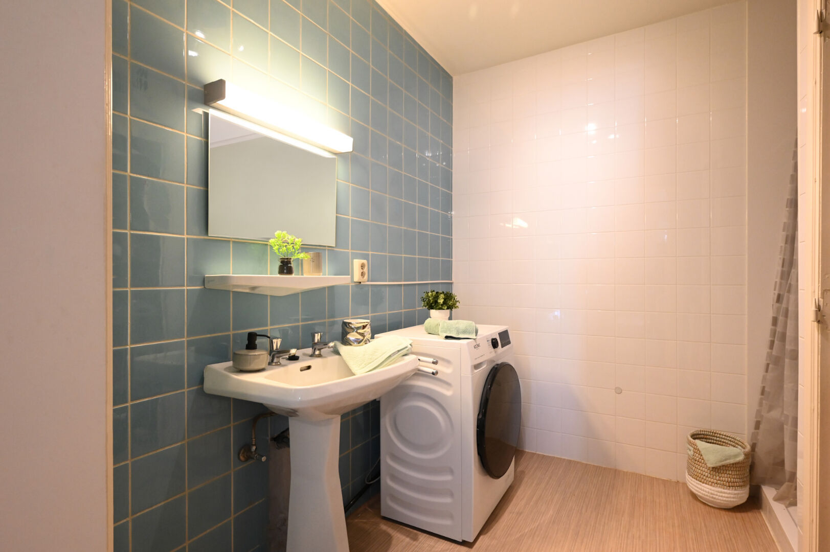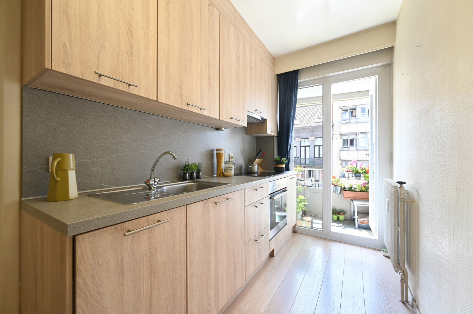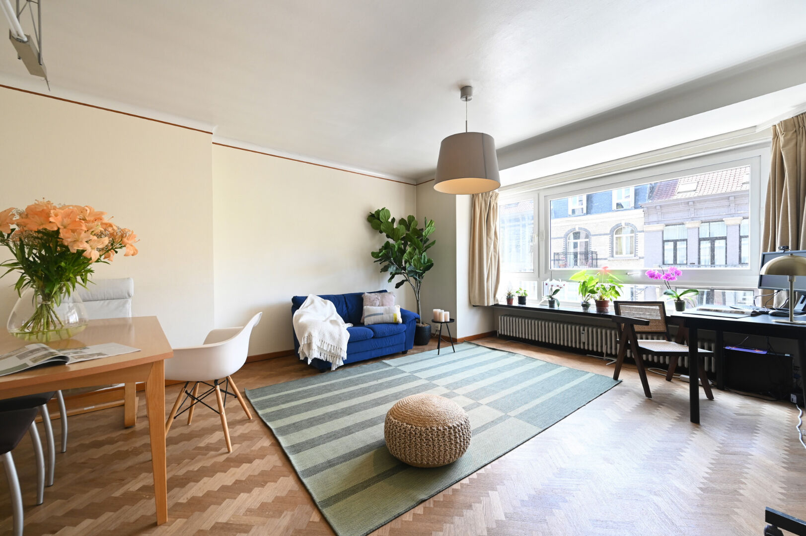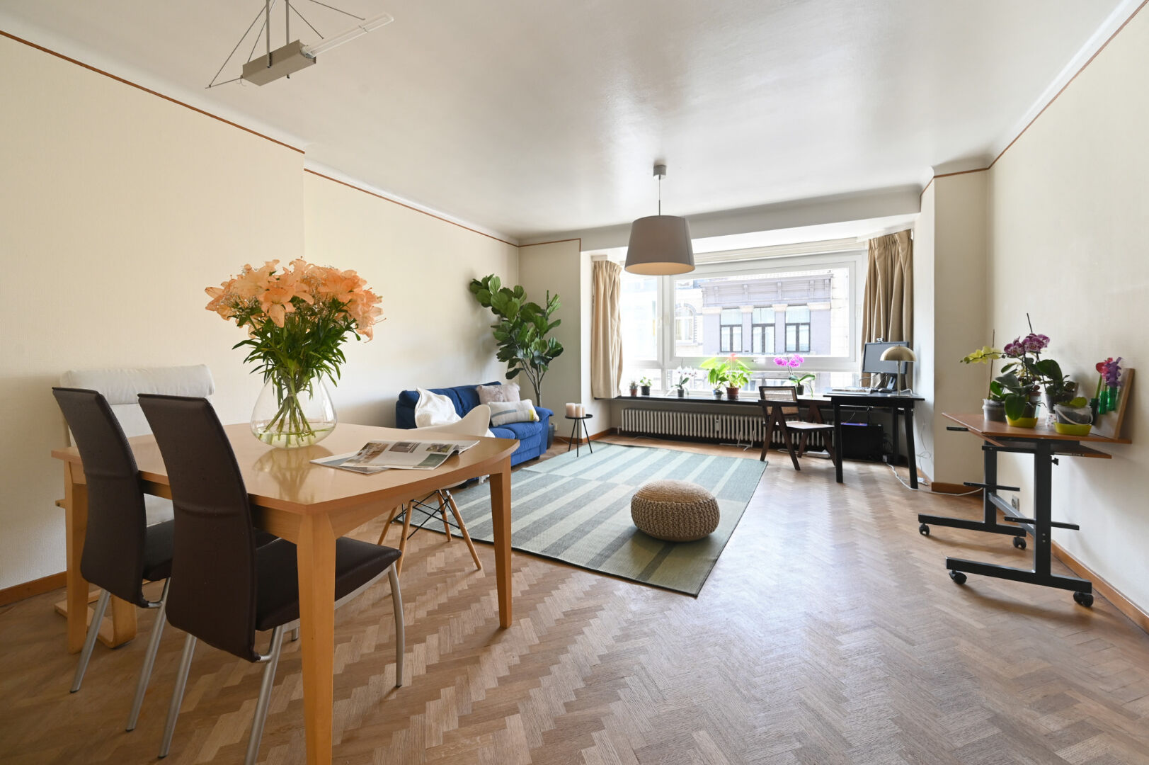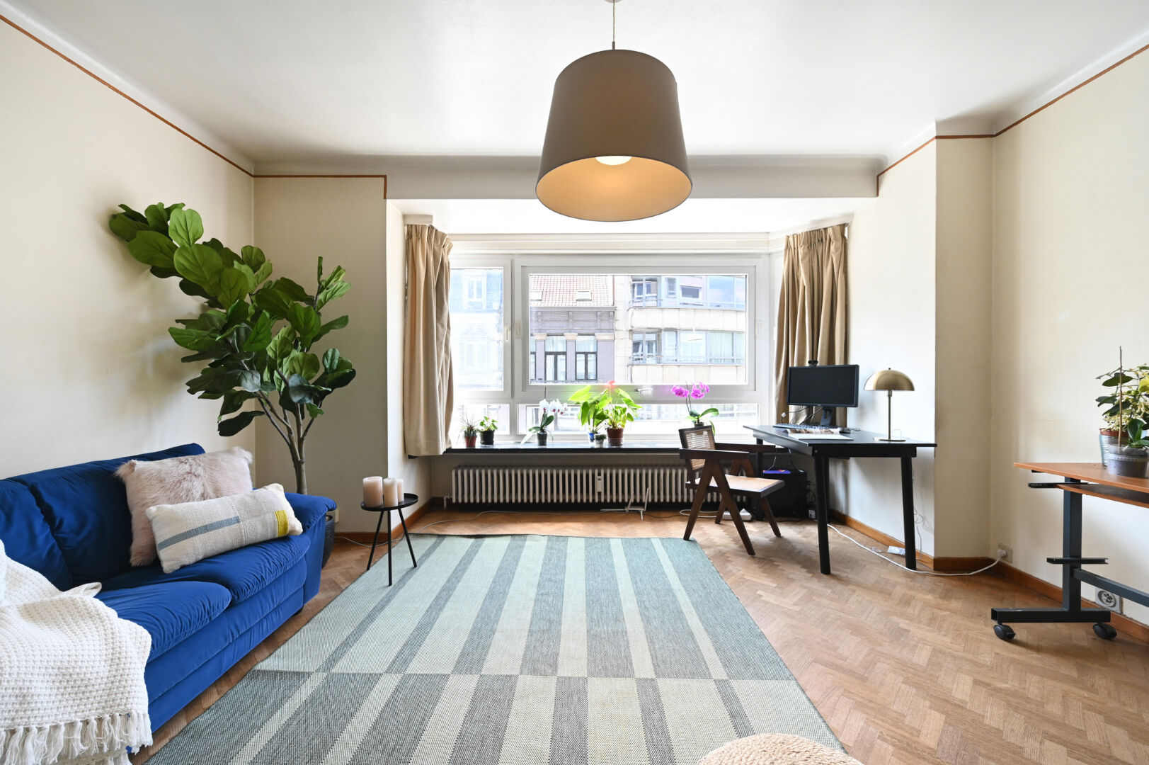 Tot slot dient bij dit appartement een uitzonderlijk ruime private kelderberging van ca. 5,5 m² aangekocht te worden voor € 6.500. Het gebouw werd gerealiseerd in 1962 en door de jaren heen stelselmatig vernieuwd. Momenteel is de VME aan het sparen voor de renovatie van de achtergevel. Op middellange termijn zullen de waterleidingen in het appartement ook behandeld dienen te worden met epoxy. De huidige vraagprijs houdt dan ook rekening met deze te verwachten kosten.