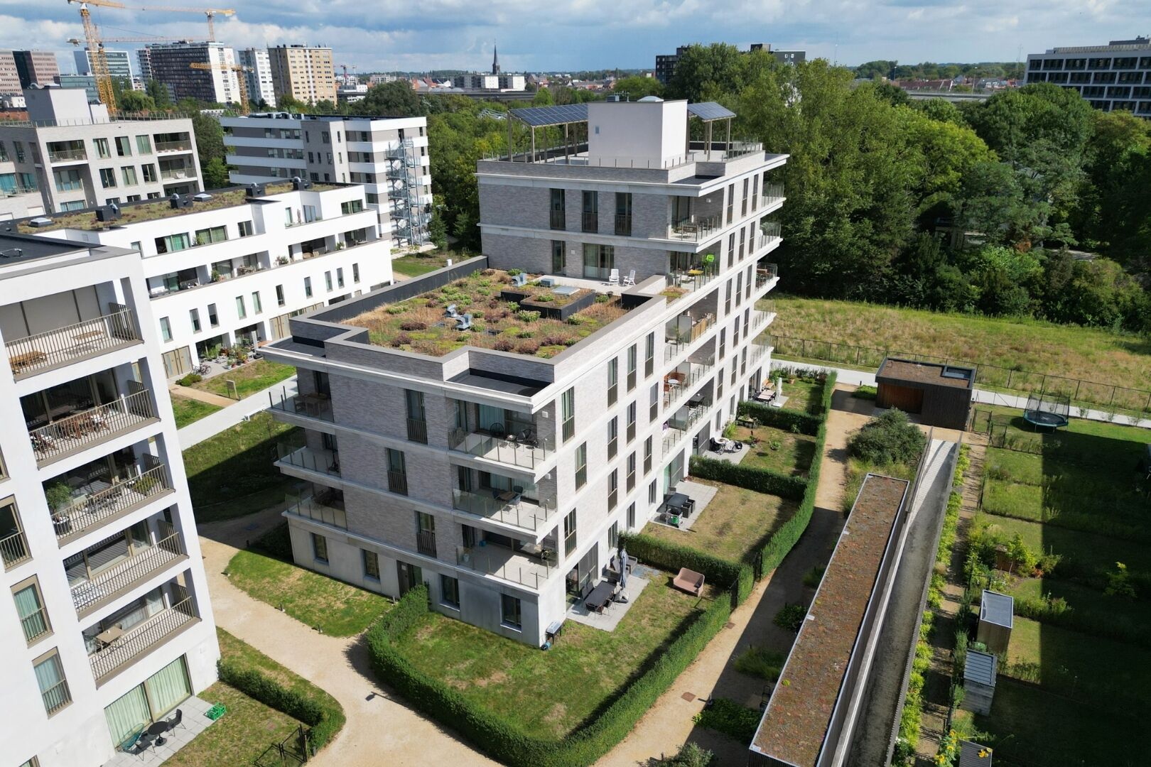 In de kelderverdieping bevindt zich een gemeenschappelijke fietsenstalling en als kers op de taart beschikt de residentie over een riant, gemeenschappelijk dakterras met panoramisch zicht over Gent.