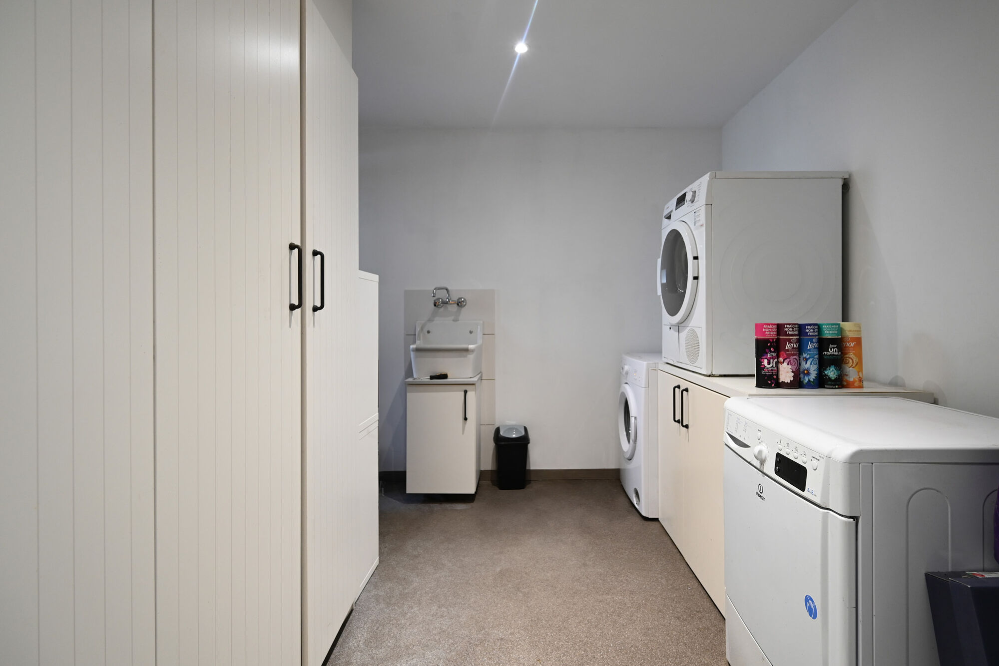 Het appartement werd volledig gerenoveerd in 2017, waardoor het vandaag een instapklare en moderne woonbeleving biedt. De indeling is doordacht: een inkomhal geeft toegang tot de badkamer en twee slaapkamers, waarvan één voorzien van een dressing. De badkamer is uitgerust met ligbad, lavabo en toilet. Verder loopt u door naar de ruime woonkamer met zit- en eethoek, die naadloos aansluit op de open keuken met diverse inbouwtoestellen. Een praktische berging/wasplaats en een droge kelder zorgen voor extra comfort en opslagruimte.