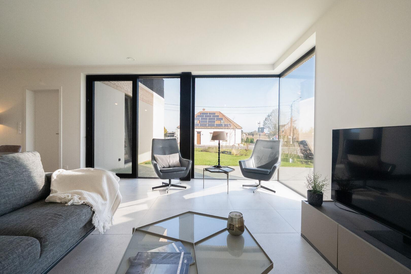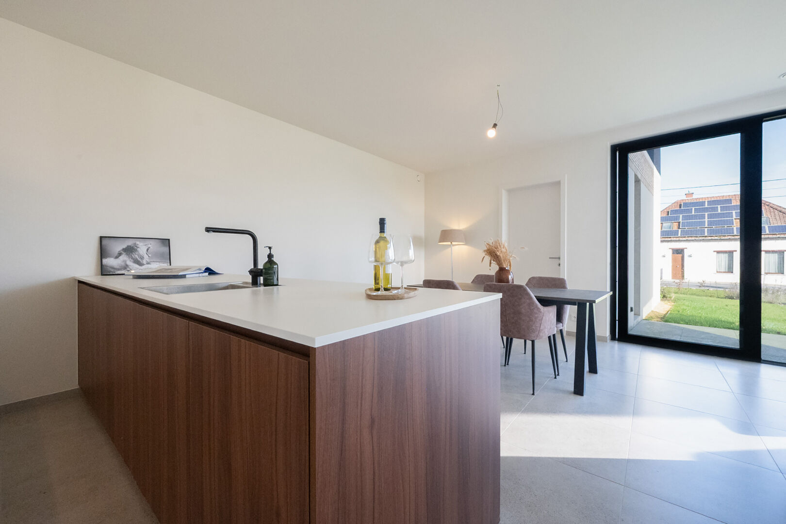 voorzien van een warmtepomp en zonnepanelen