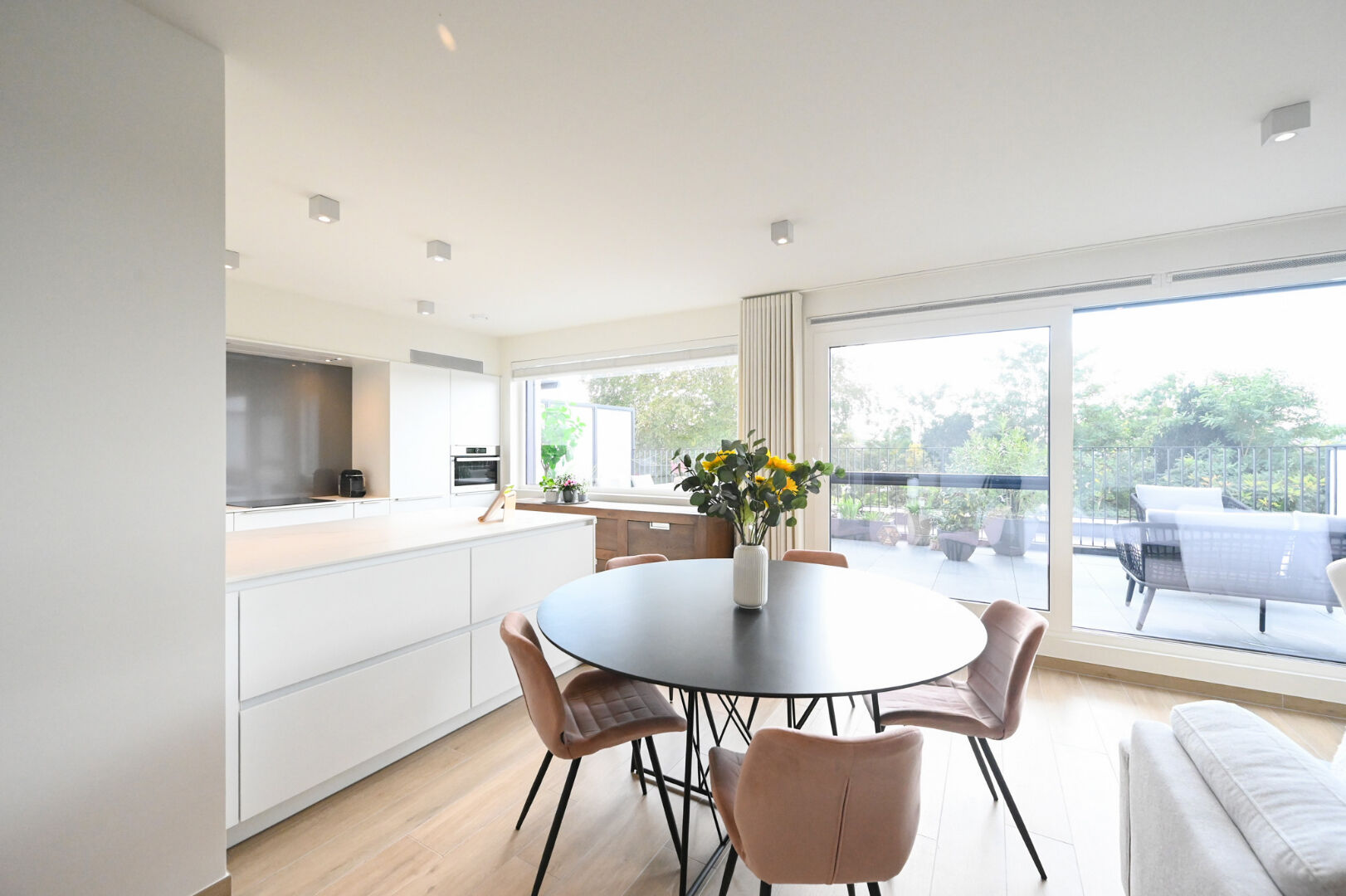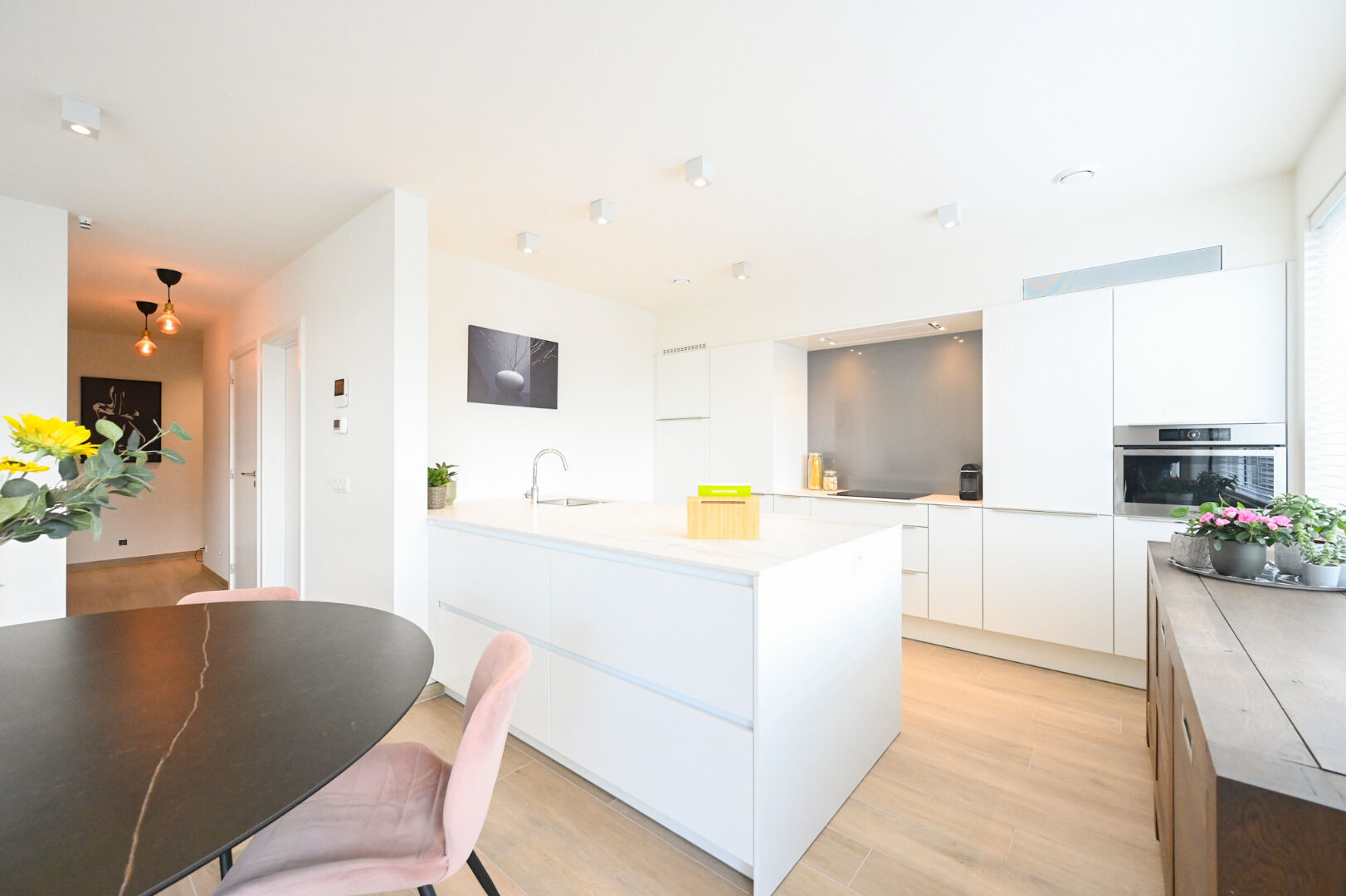 De open keuken sluit naadloos aan bij de leefruimte en is hoogwaardig afgewerkt met moderne inbouwtoestellen en een aansluitende berging.