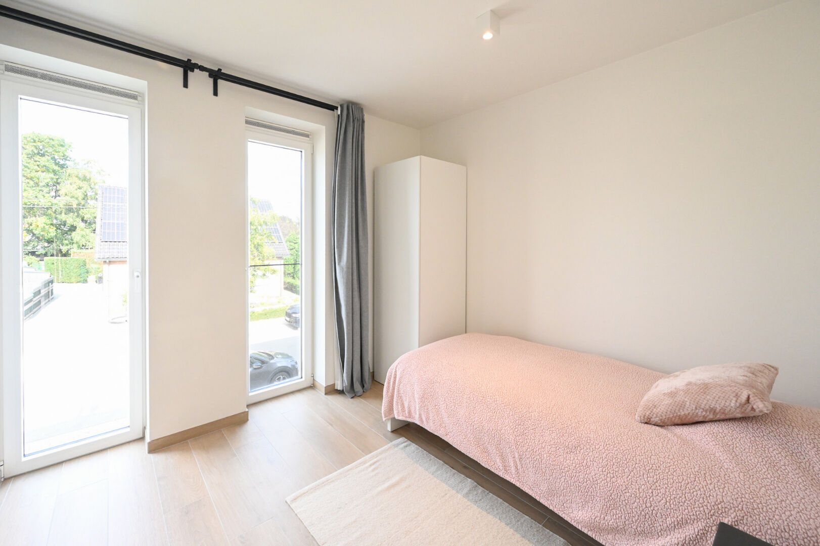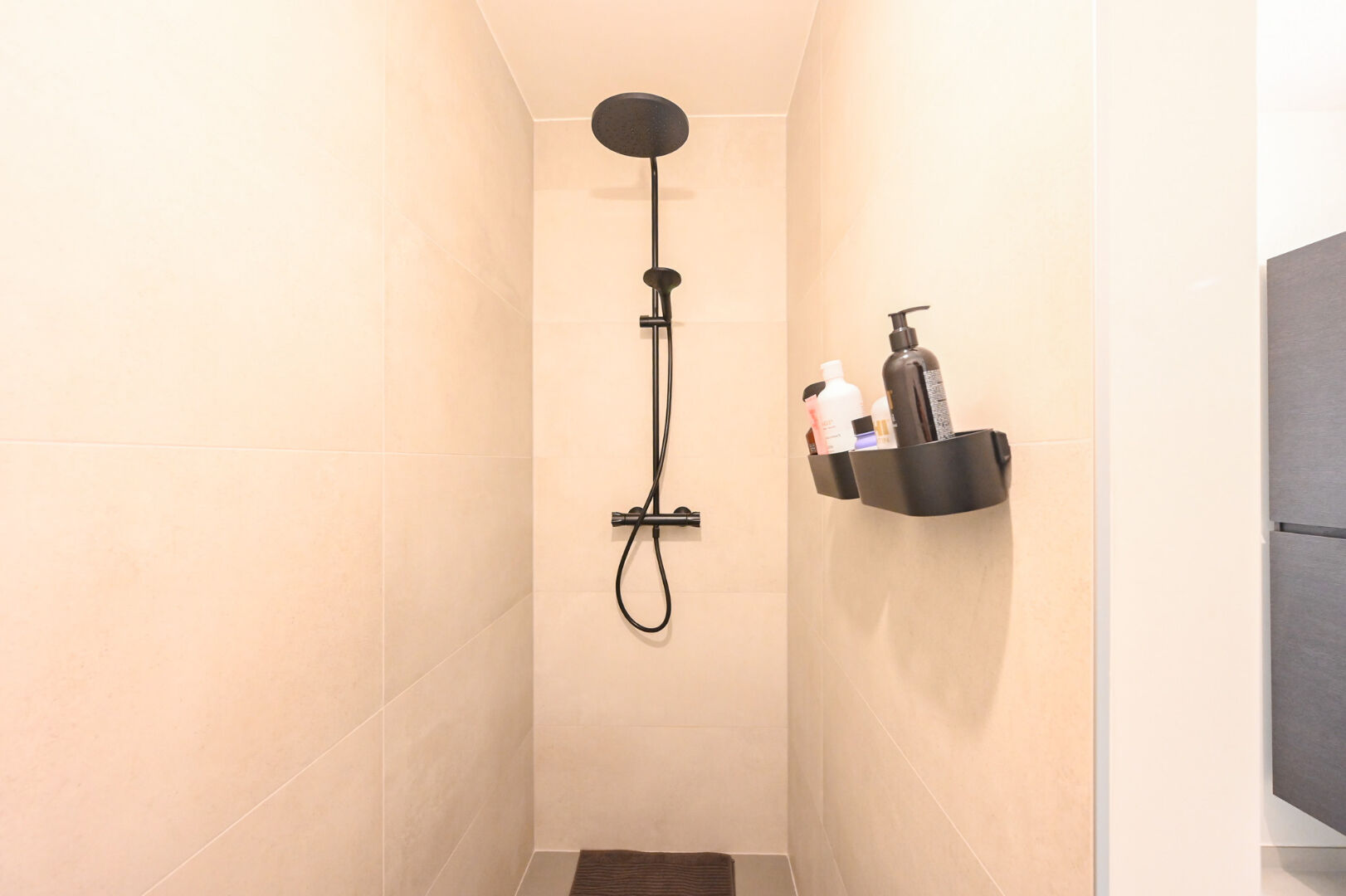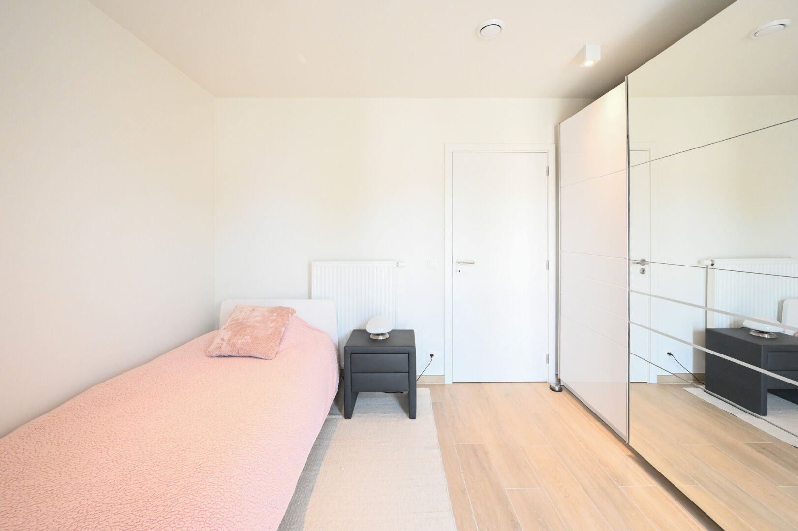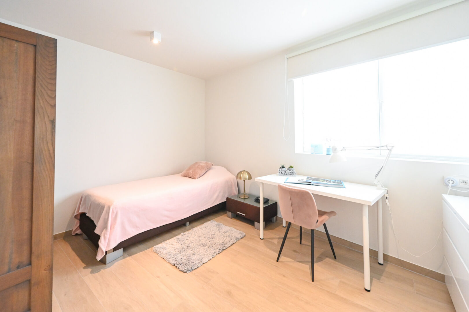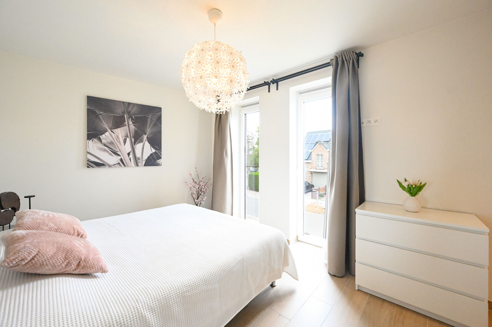 Het appartement beschikt over drie volwaardige slaapkamers, waaronder één met aparte dressing. De stijlvolle badkamer is uitgerust met een inloopdouche en dubbele wastafel, uitgevoerd met duurzame materialen.