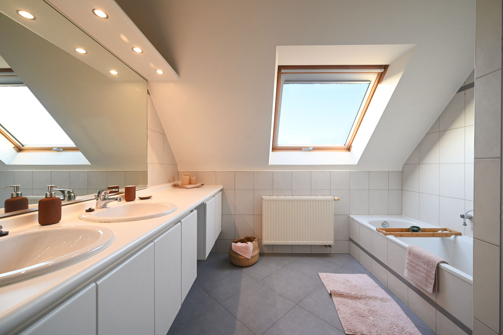 De badkamer is uitgerust met zowel een ligbad als een douche, zodat u altijd kunt kiezen tussen ontspannen of snel opfrissen. Verder zijn er twee aparte toiletten, waarvan er één de mogelijkheid biedt om omgebouwd te worden tot een tweede badkamer.