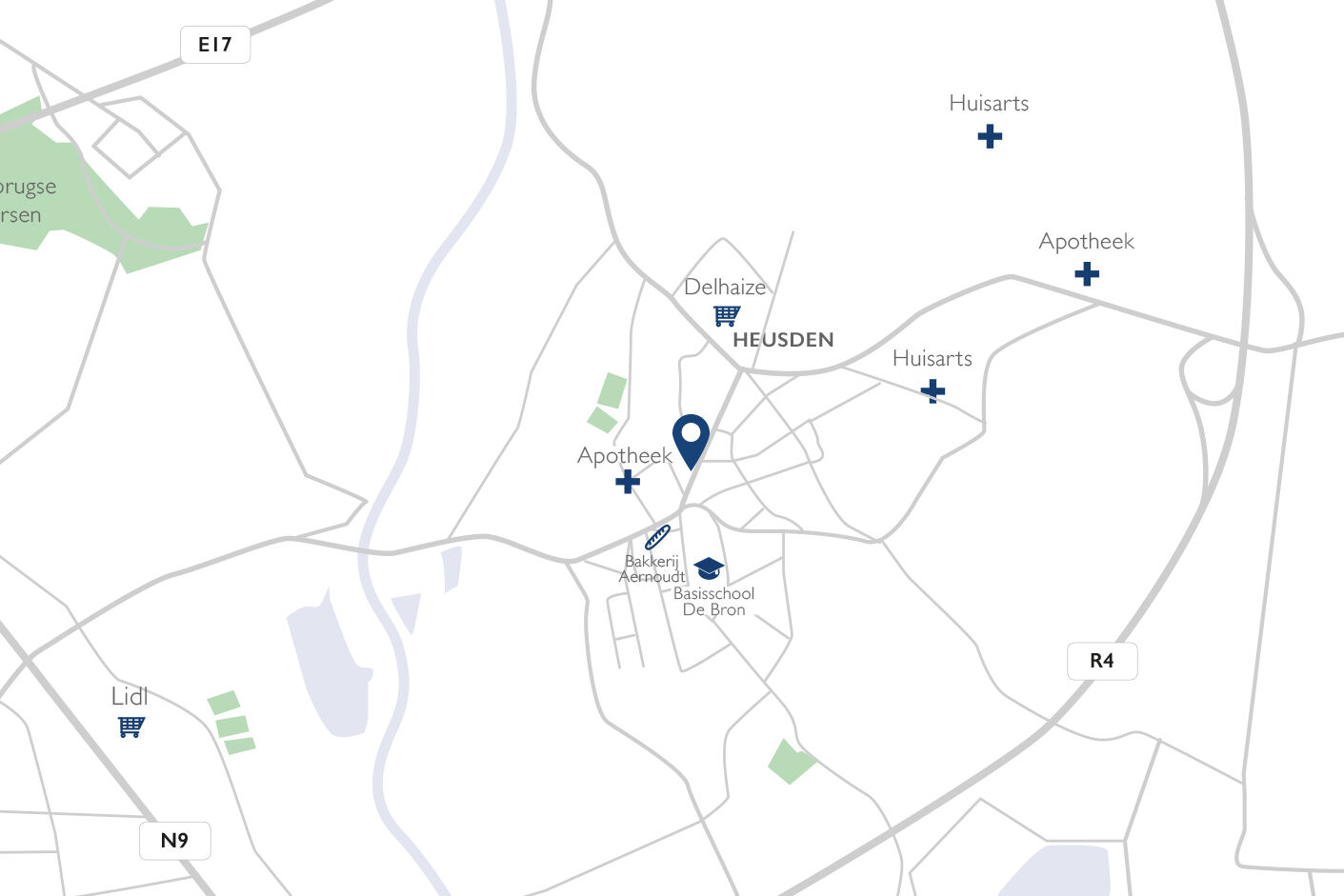 De residentie Tygo is gelegen in het hartje van Heusden en is zeer vlot te bereiken dankzij de nabijheid van de R4, E40 en E17.