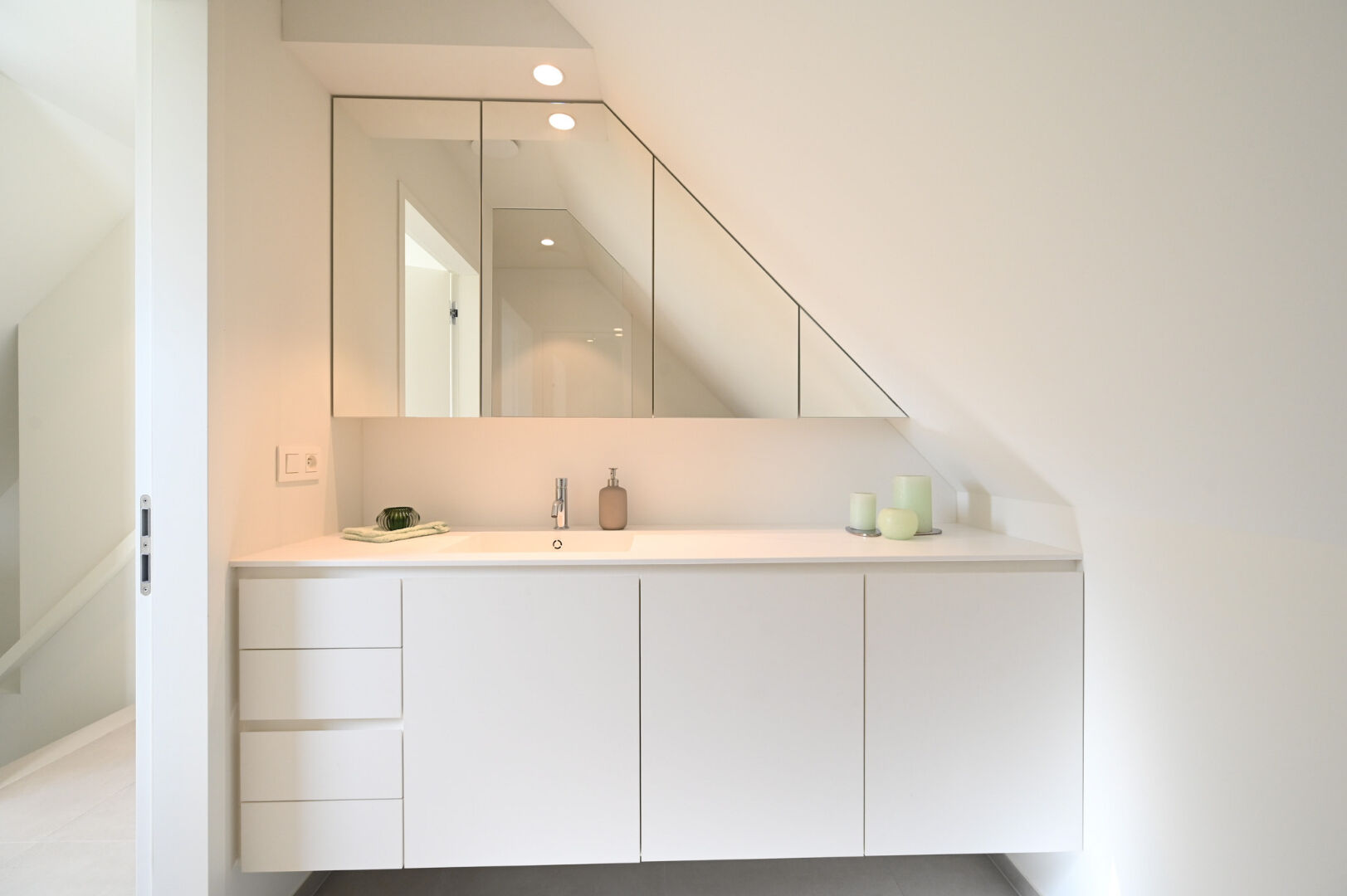 Vakkundig geschilderd/ Delta Light inbouwspots/ Videofonie met gsm-connectie/ Voorzieningen voor laadpaal in garage/ Automatische zonnescreens/ Superisolerende beglazing met aluminium schrijnwerk.