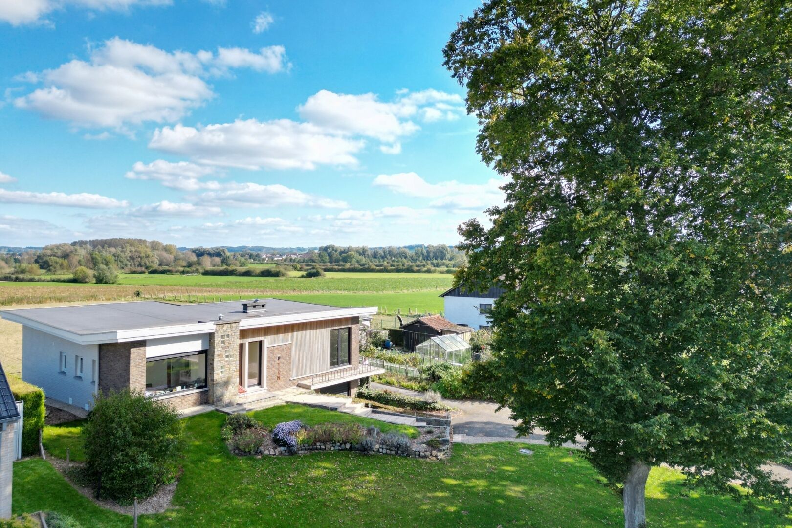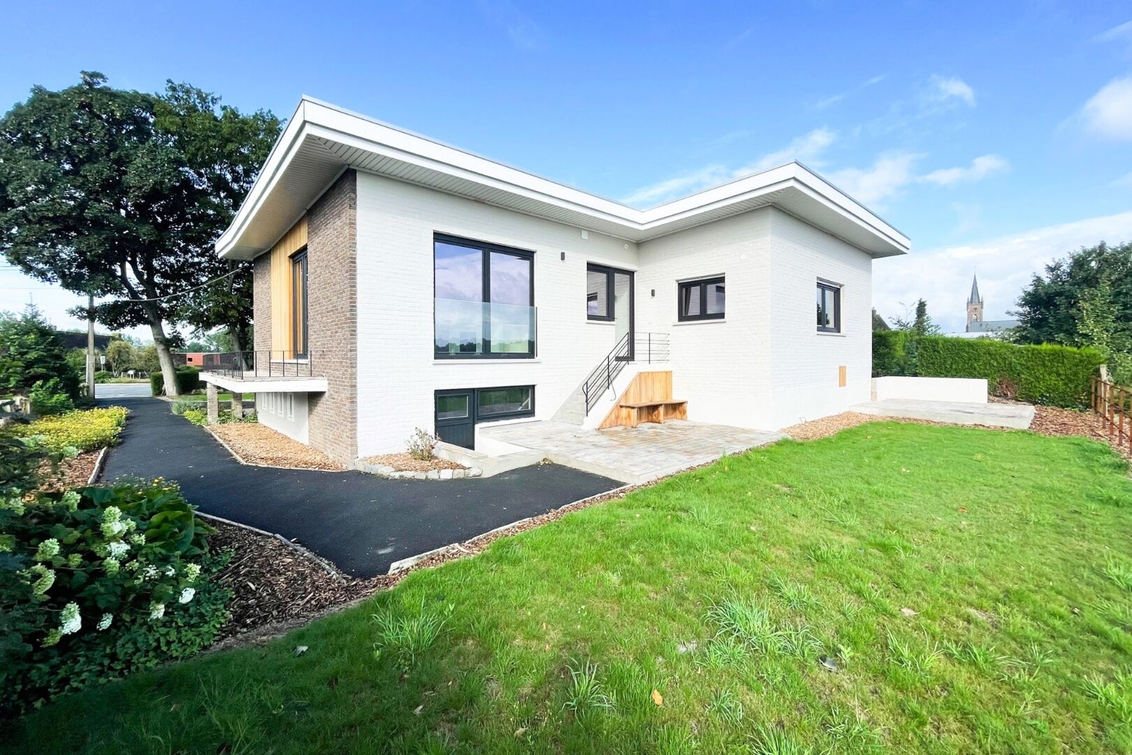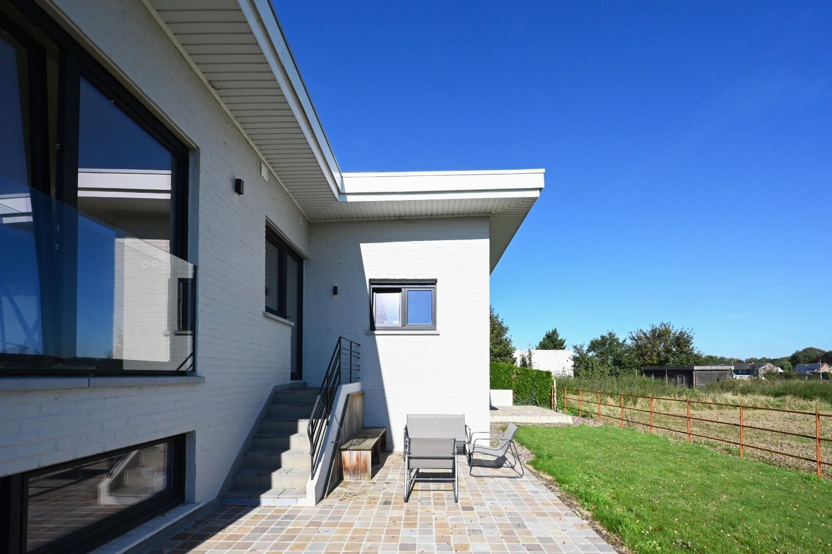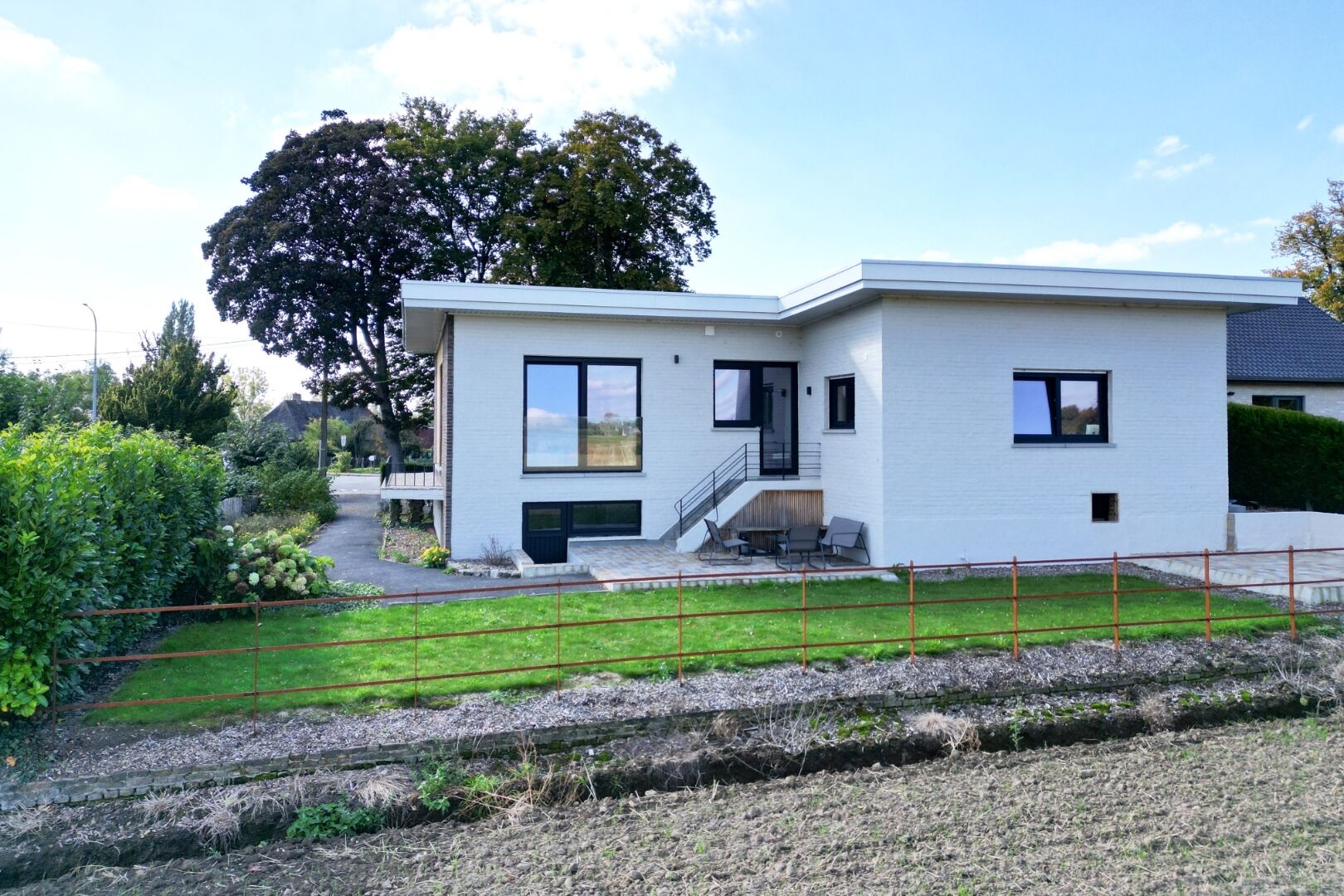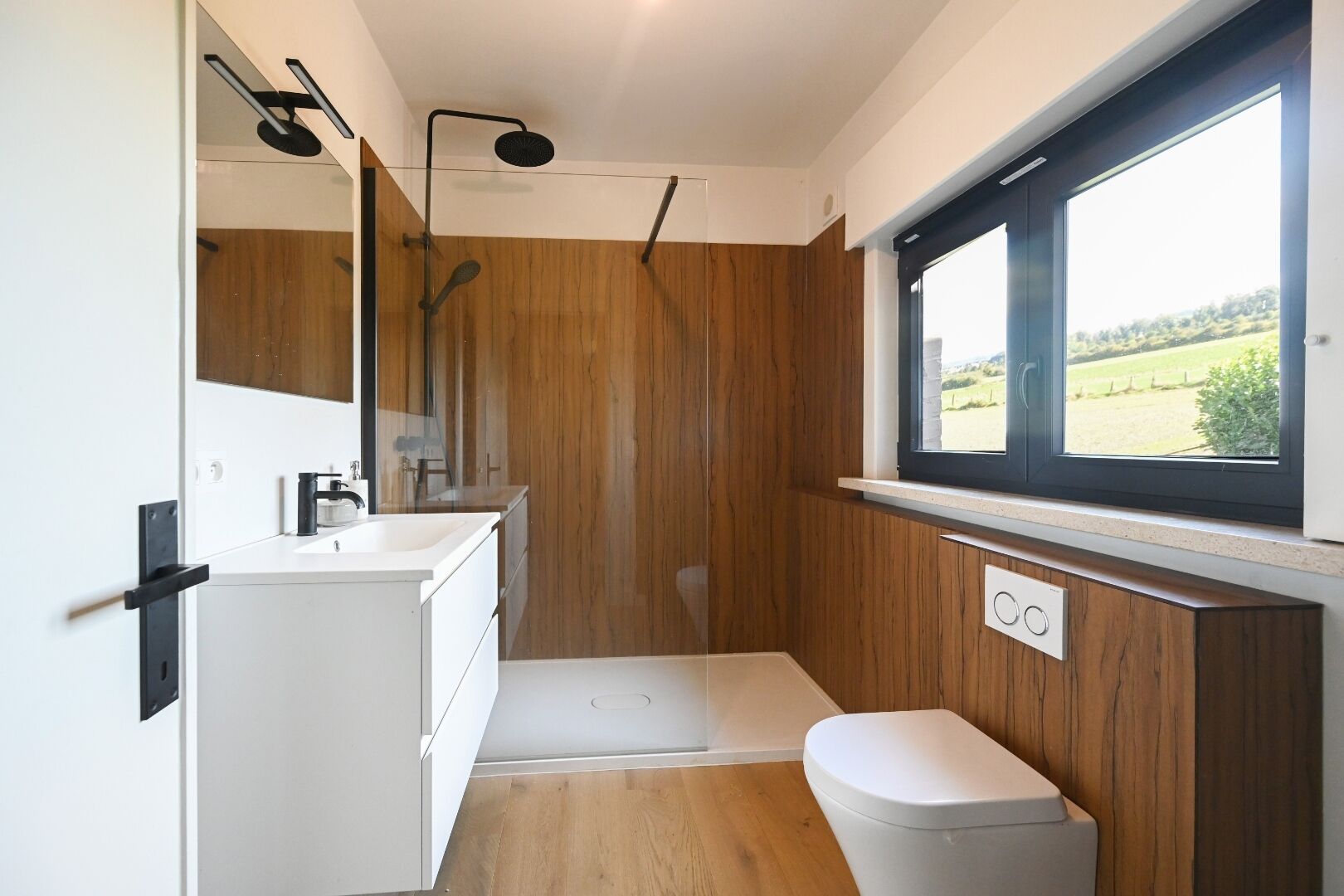 Bij binnenkomst in de woning kom je in de uitnodigende inkomhal met gastentoilet die toegang biedt tot de open leefruimte, voorzien van een zit- en eethoek en een open keuken. De moderne leefkeuken met kookeiland biedt toegang tot een aparte trap die leidt naar de benedenverdieping, waar je een wasruimte, berging en een ruime garage vindt. Via de leefkeuken of de garage bereik je het terras en de achtertuin, waar je kunt genieten van adembenemende uitzichten over de velden van de Vlaamse Ardennen. Er zijn drie volwaardige slaapkamers en een moderne badkamer, uitgerust met douche, lavabo en toilet. Een prachtig balkon aan de voor- en rechterzijde van de woonkamer voegt extra allure toe.