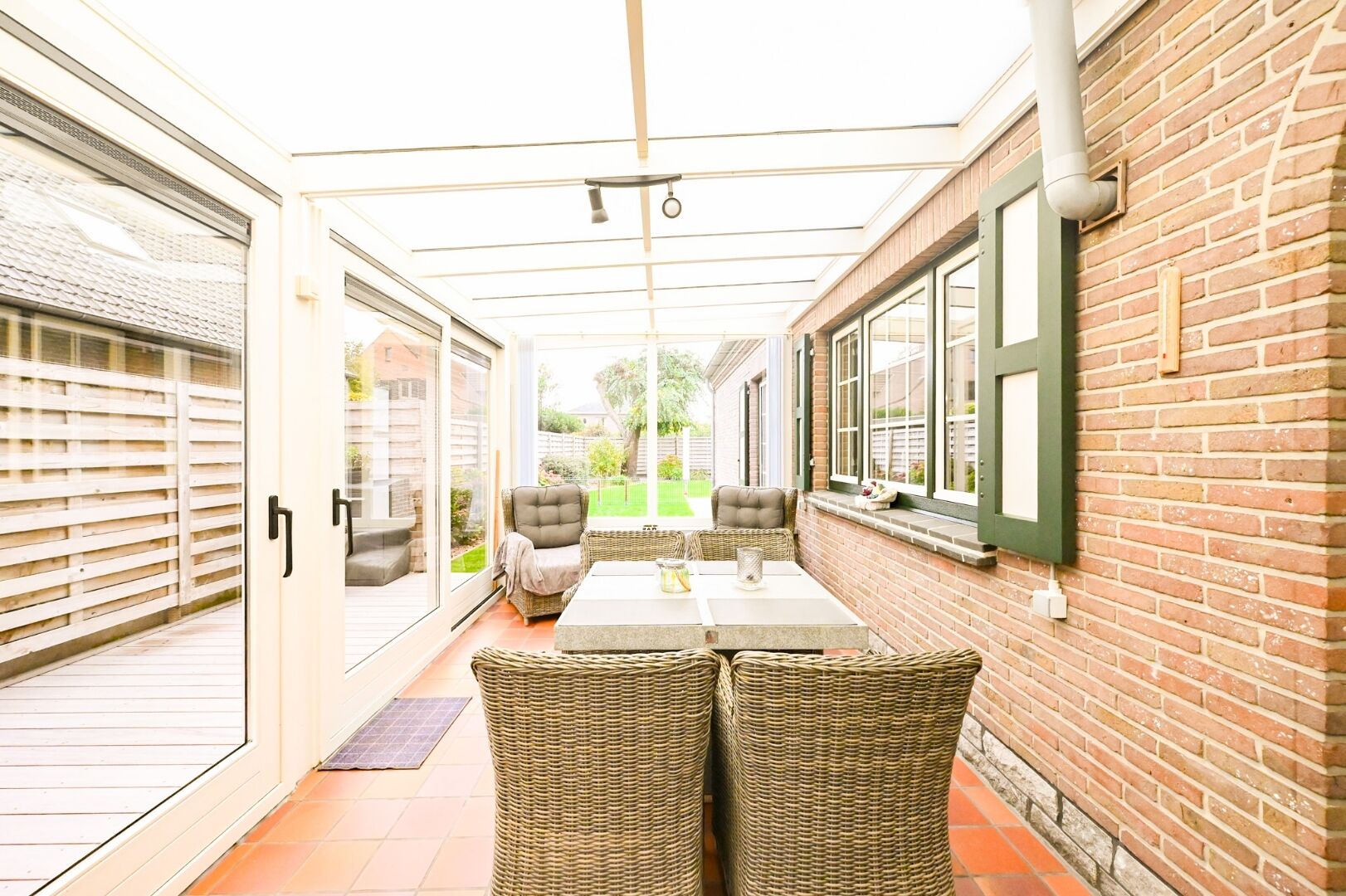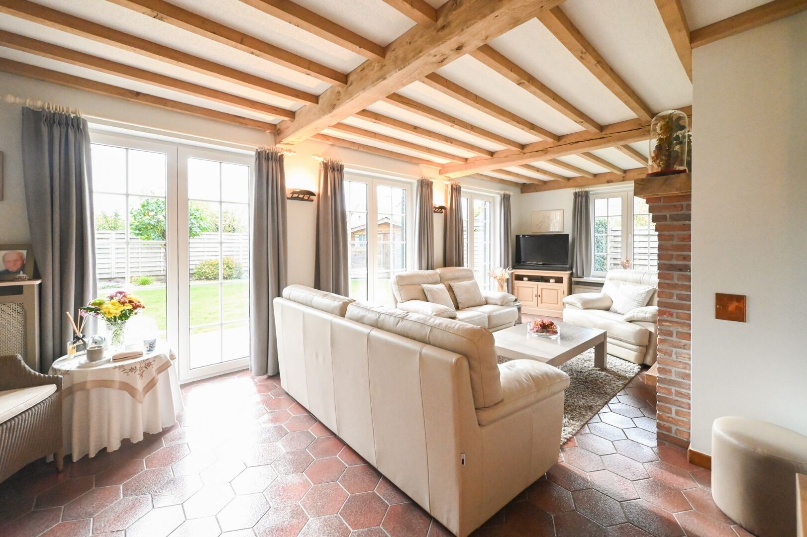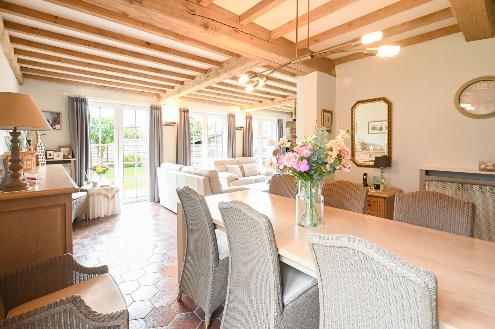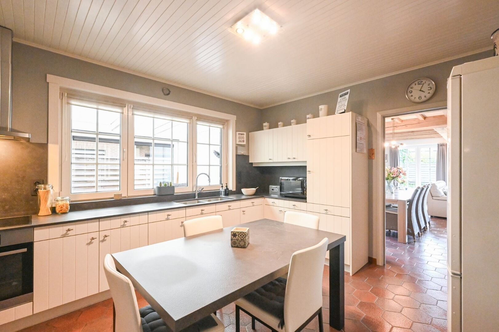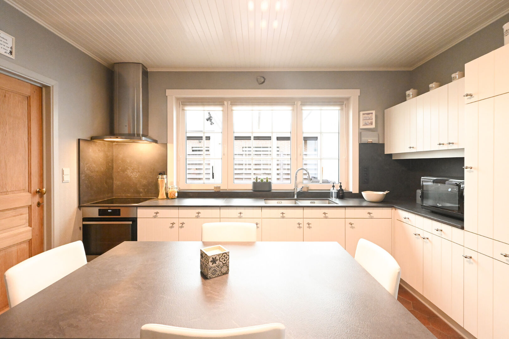 De recent vernieuwde keuken sluit naadloos aan bij de leefruimte en is volledig uitgerust met kwalitatieve, hedendaagse toestellen. Dankzij de efficiënte indeling beschikt u over voldoende werk- en opbergruimte, ideaal voor wie graag kookt en gezellig samen tafelt. Aansluitend biedt de veranda een extra leefruimte met zicht op de tuin, perfect als eet- of ontspanningshoek.