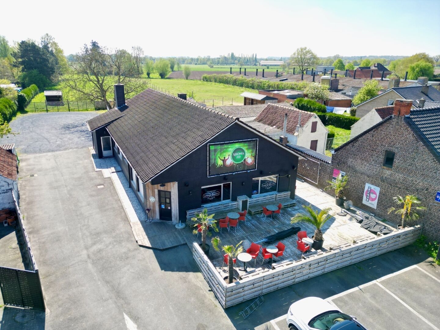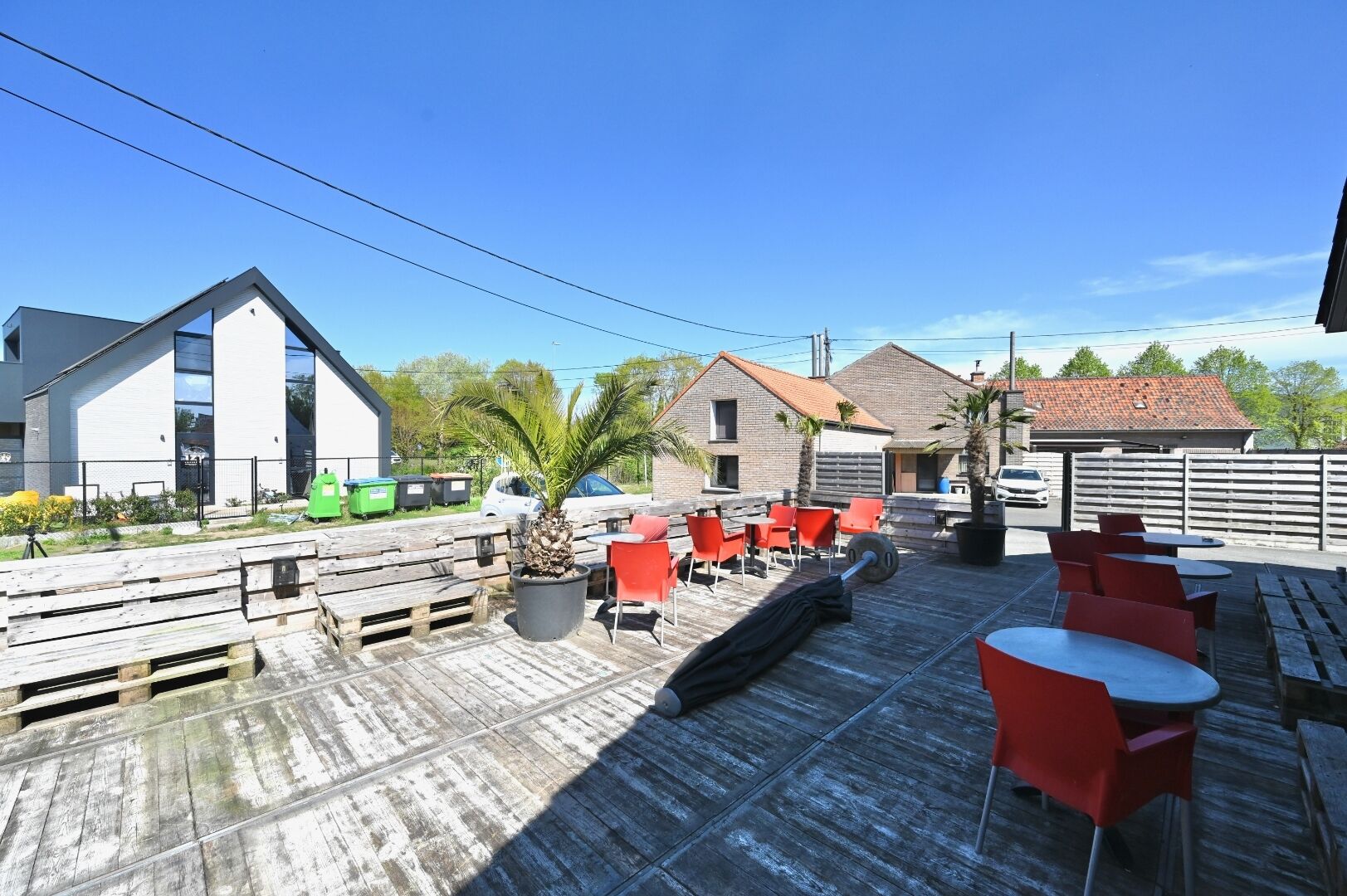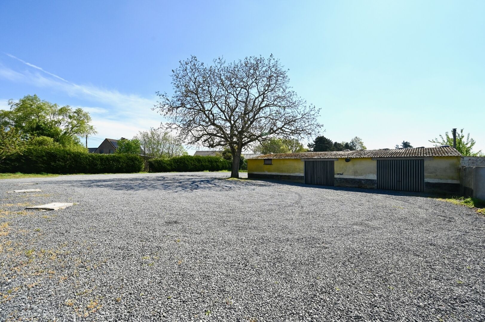 Het geheel bevindt zich op een royaal perceel van ca. 1.793,92 m², waardoor er niet alleen binnen, maar ook buiten heel wat potentieel is. Achteraan op het terrein bevinden zich meerdere bijgebouwen waaronder een groot gebouw dat is onderverdeeld in drie garages. Daarnaast is er nog een afzonderlijke grote garage voorzien van een geautomatiseerde poort.
