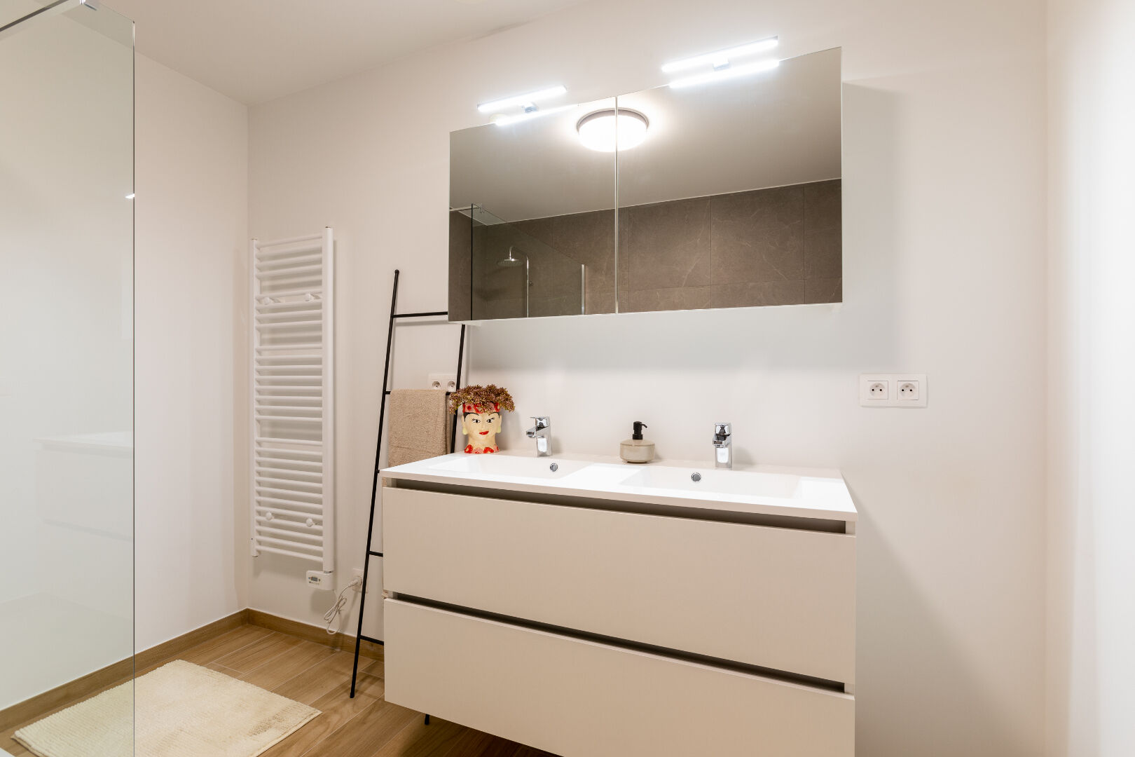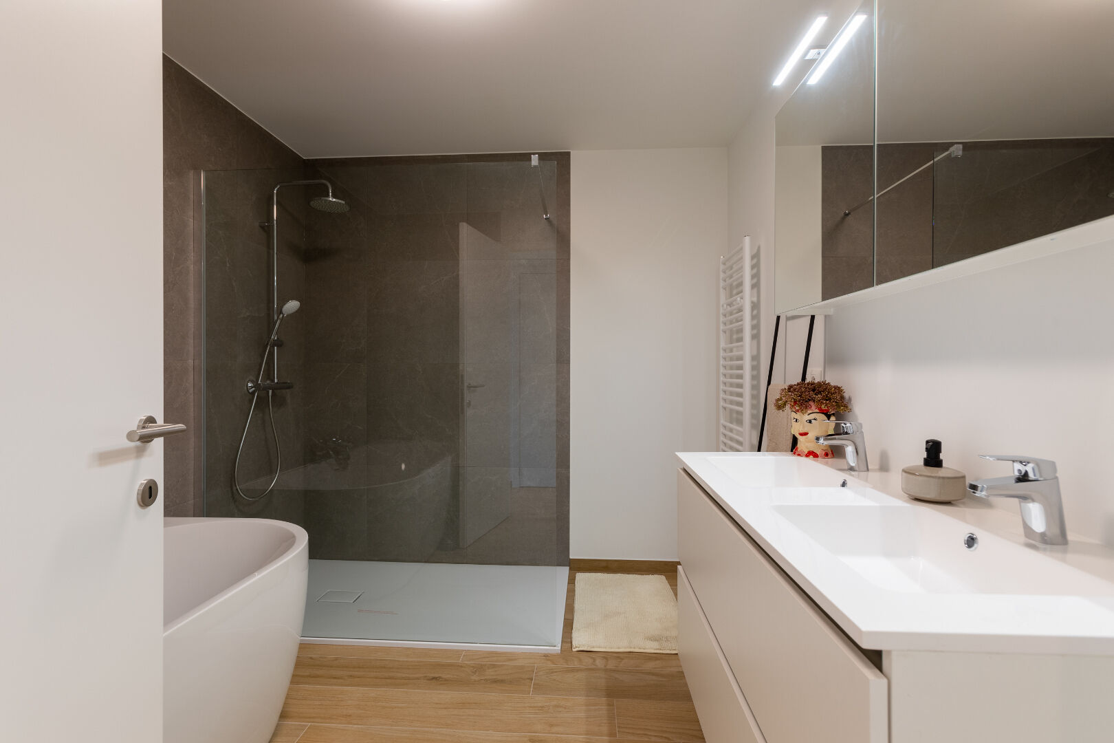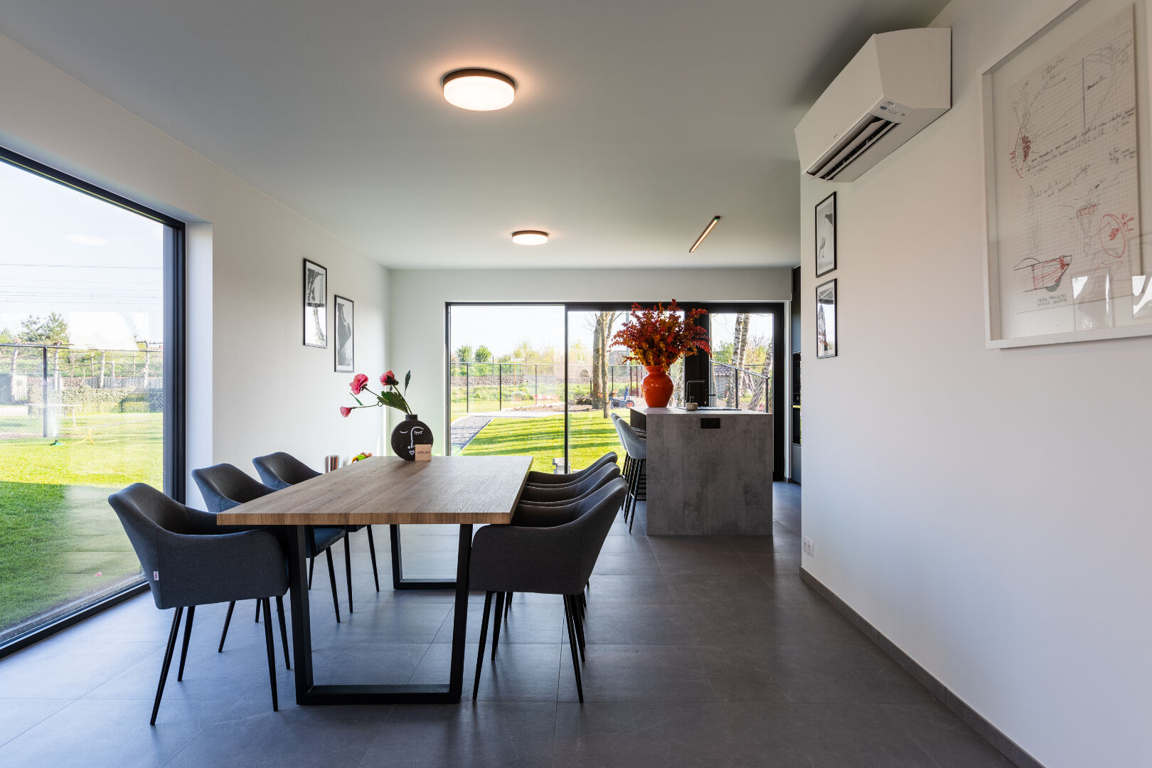 Standaard voorziene afwerking - 14 fotovoltaïsche panelen van minimaal 445 Wp - Omvormer met batterijopslagcapaciteit van 5 kWh - Verwarming via lucht/lucht-warmtepomp - Geavanceerd ventilatiesysteem D+ - Miele-keukenapparatuur - met een uitzonderlijk laag e-peil van -15