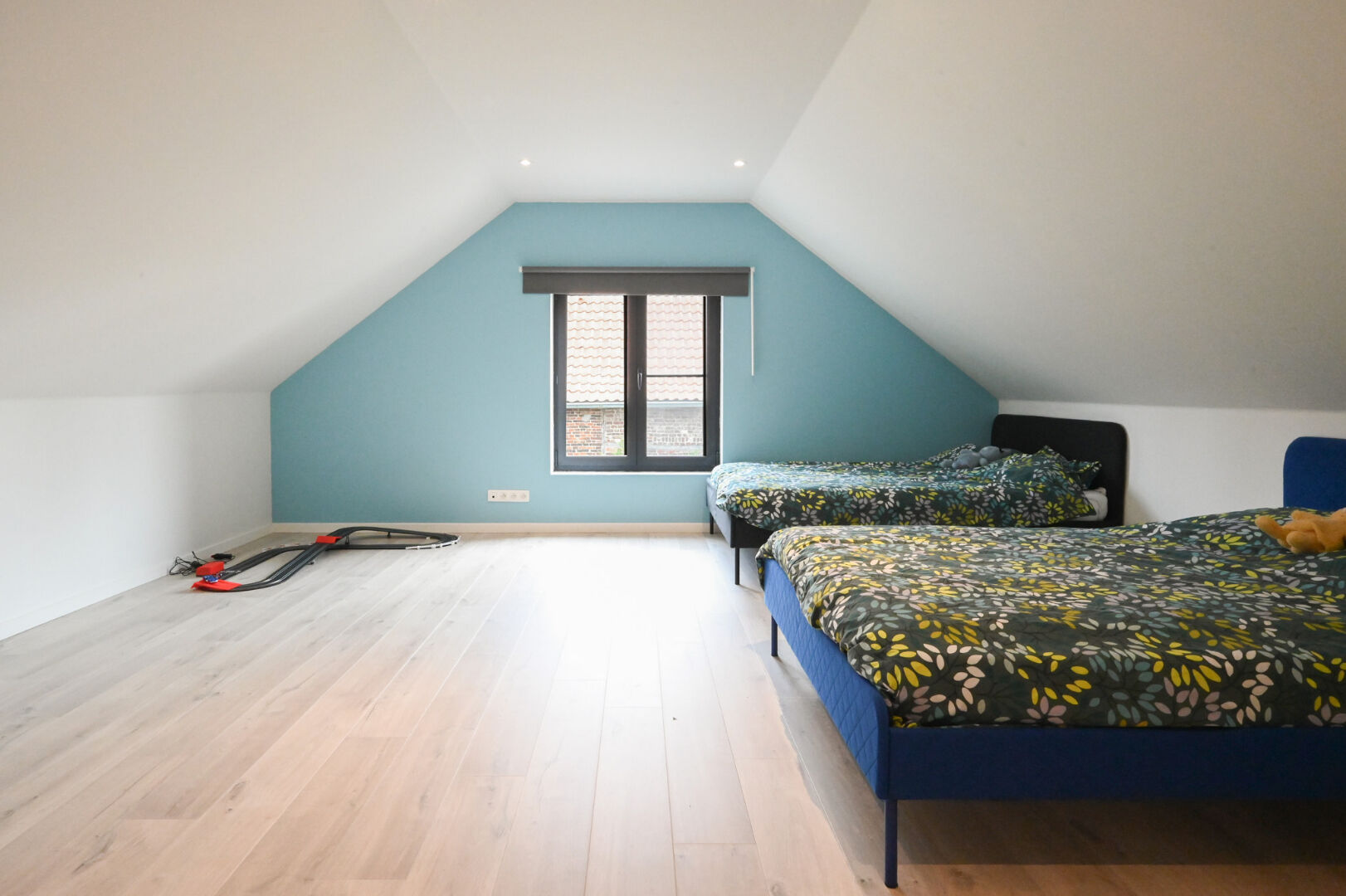 De eerste verdieping biedt twee grote slaapkamers en een royale vide, ideaal voor een bureau, hobbyruimte of extra leefruimte. De tweede badkamer is voorbereid voor verdere afwerking en er is een apart tweede toilet aanwezig.