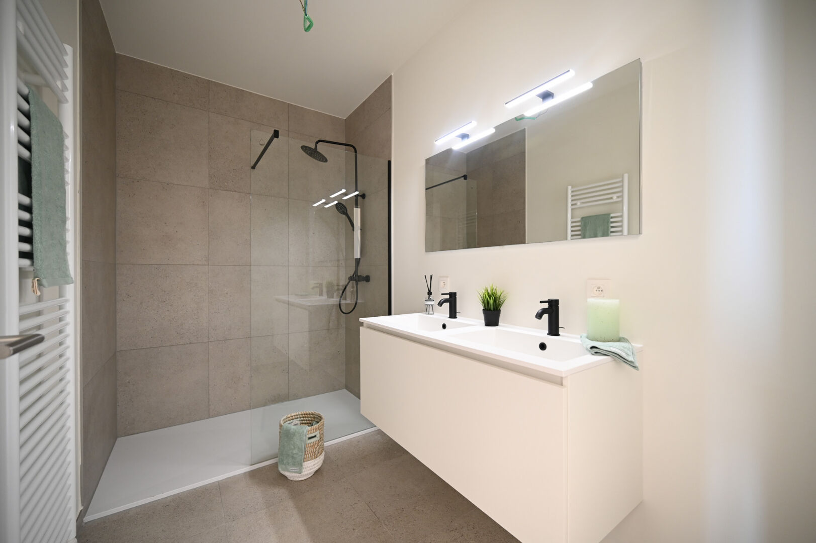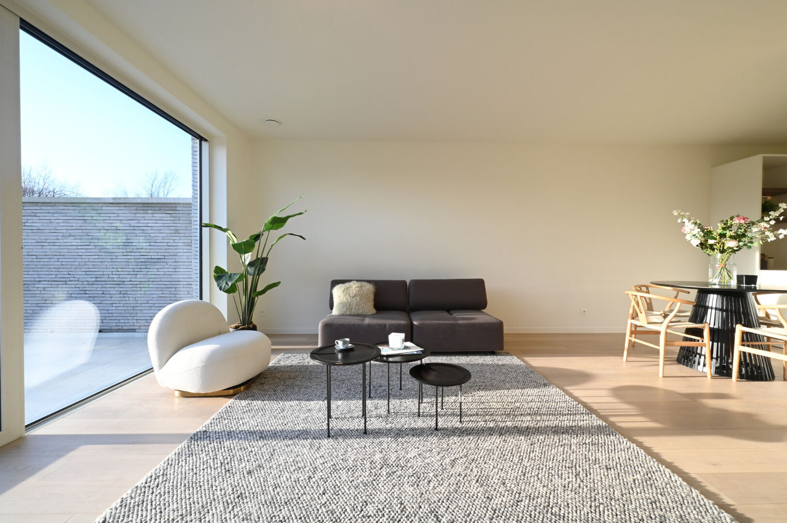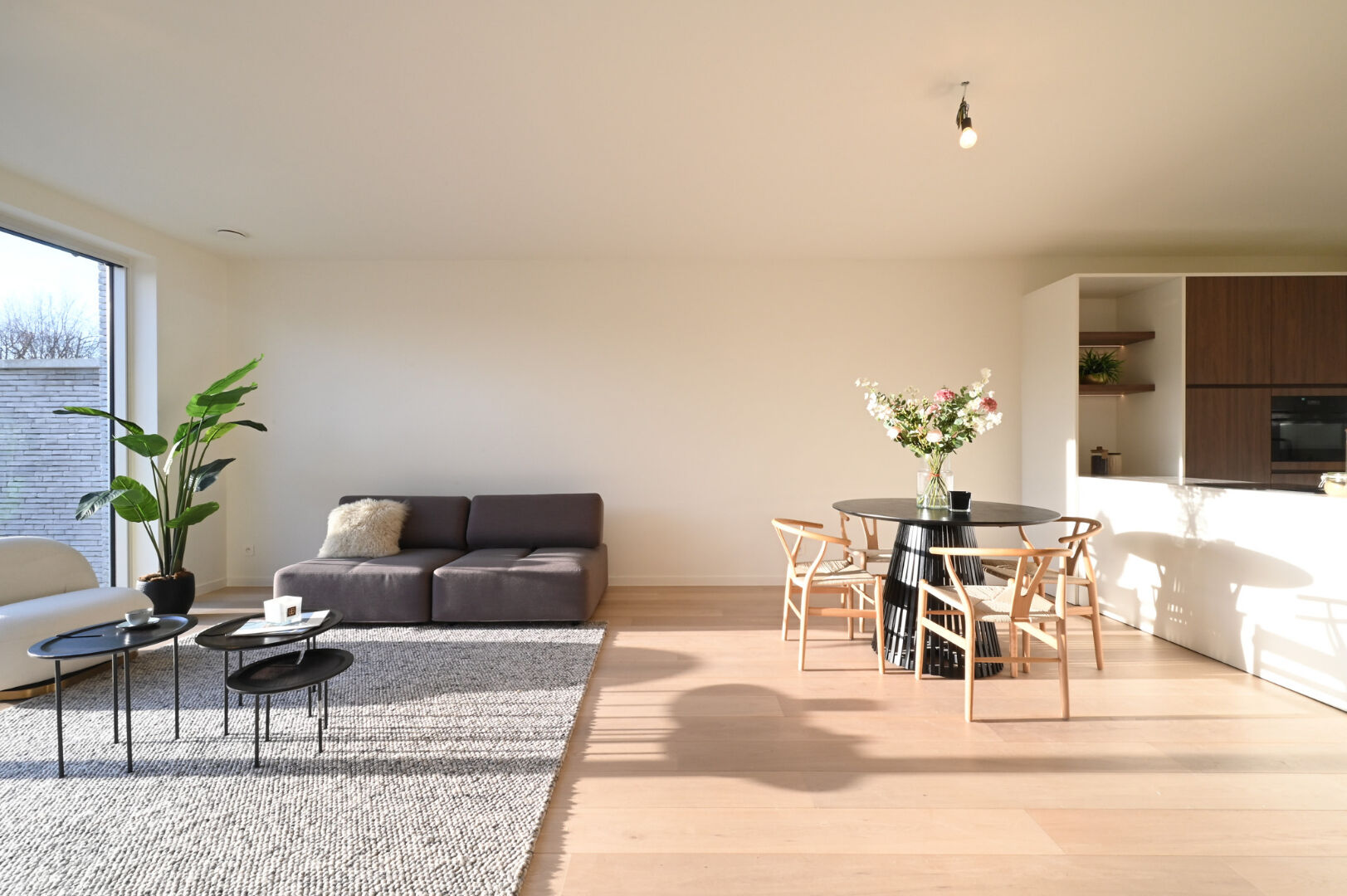 De woning is gelegen aan de rand van Zwijnaarde in een kleinschalig project van zeven gezinswoningen. Ze voldoet aan de strengste energienormen met een E-peil van max E20. Standaard is de woning uitgerust met PV-panelen, balansventilatie en een individuele warmtepomp met vloerverwarming.